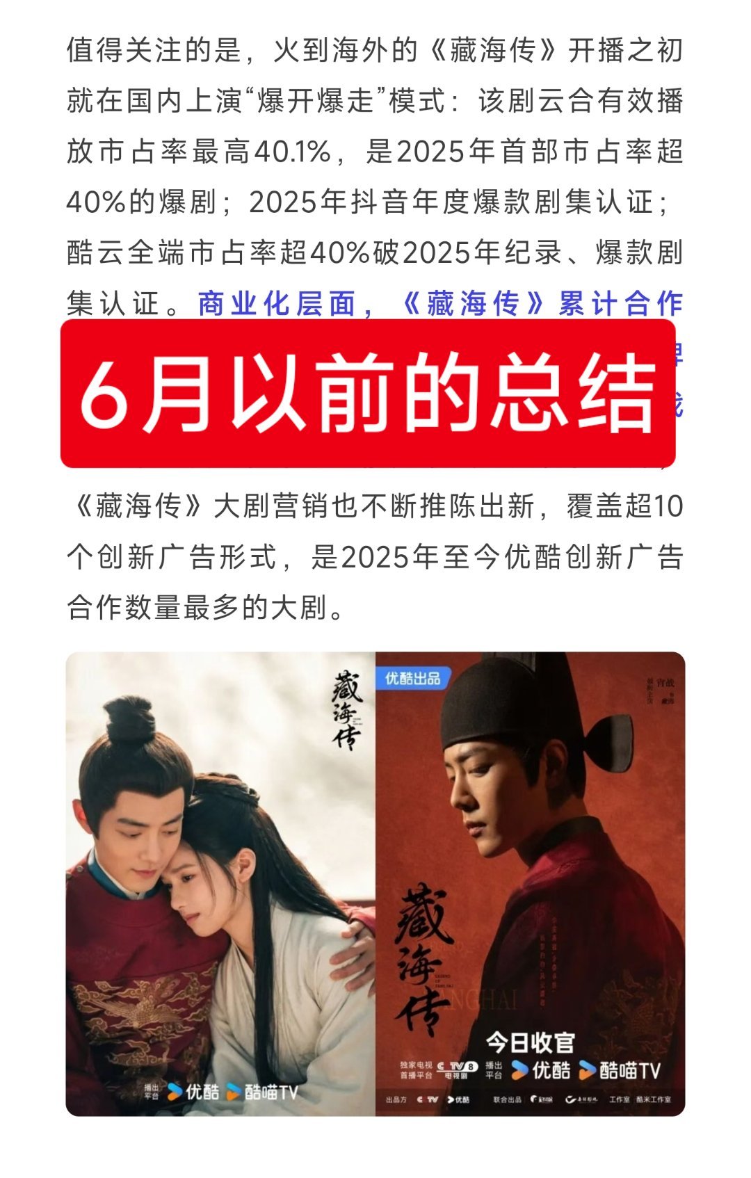 藏海传2025至今优酷招商金额第一这个数据是6月份以前的数据,不是现在的!