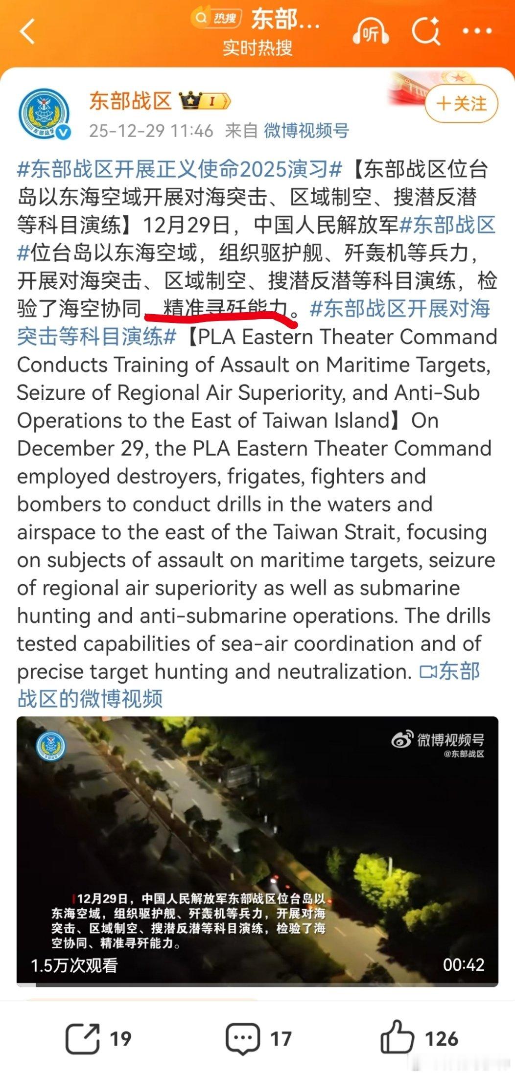 此次演习最大亮点开局即开打亮点,有两个。第一,这次,直接,打击海陆空移动目标。就是,精准寻歼!这些移动目标,战时,危害大!第二,出现在明天