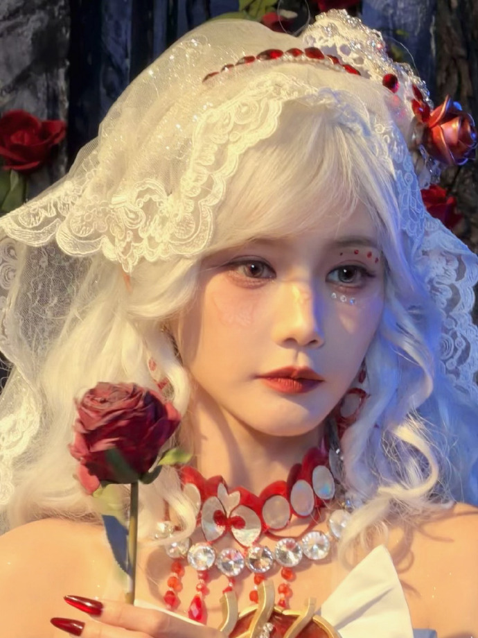 李一桐白玫瑰公主 李一桐白玫瑰公主,唯一纯白的玫瑰花,白发头纱蝴蝶妆真给我狠狠美到了~