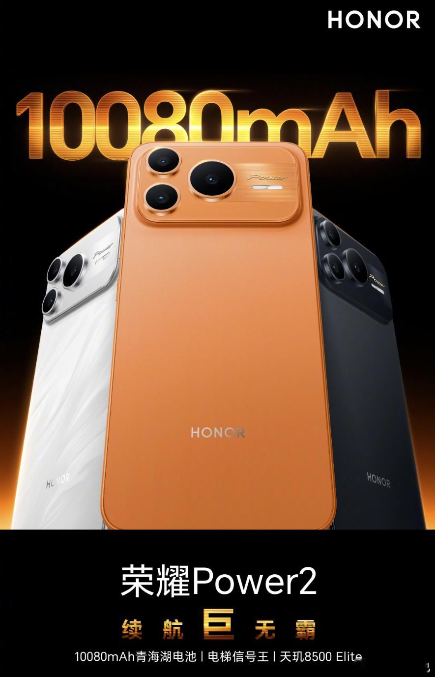 数码闲聊站爆料:荣耀Power2参数全出炉,真机图也流出来了,一共仨配色。摄