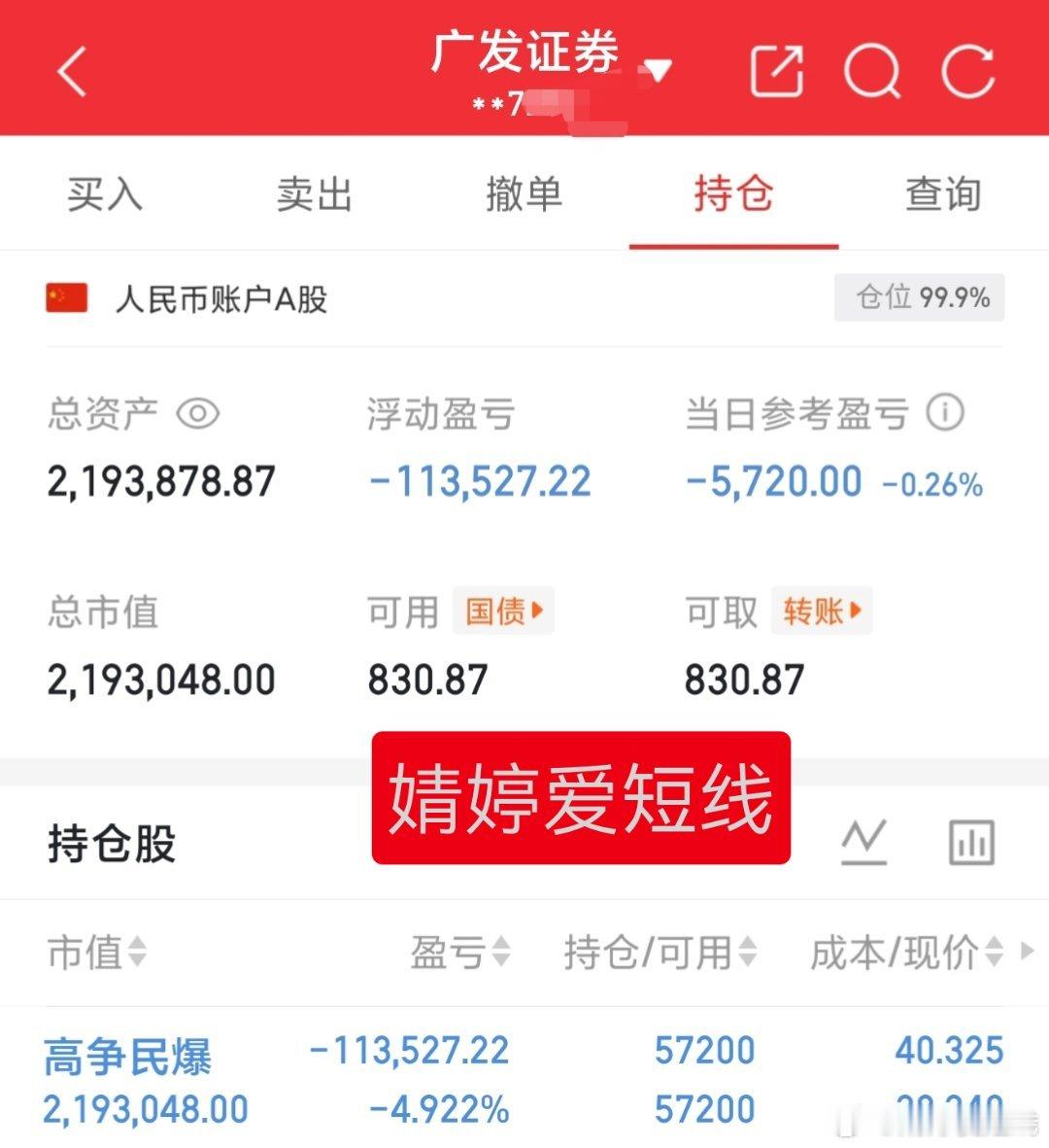 30万本金实盘记录(第373天)目前资金:2193878.87元今日持有:高争民爆 sz002827[股票]我会把每天实盘记录下来,我相信实盘肯定一直往前冲,希望各位股友支持婧婷!点赞富一生,评论888票票长虹!特别声明:这只是我个人的操作记录,不作为任何投资建议,更不是劝你们跟买!股市有风险,投资需谨慎!!!🙏🙏🙏股票上证指数a股炒股技巧