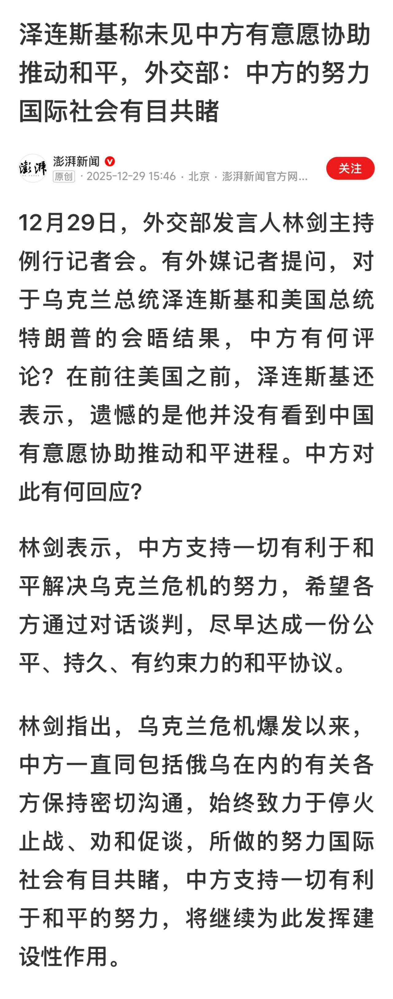 泽连斯基及乌克兰政府过去一段时间对中国在危机中扮演的角色确实表达过复杂的看法。例如,在2025年8月,泽连斯基曾表示“乌克兰不需要中国作为提供安全保障的国家之一”。然而,此前他也曾表示“中国是一个强大的国家”,并认为“中国必须迫使俄罗斯停止侵略”。这种态度的波动性,反映了乌克兰在面对大国关系时的现实考量与外交困境。