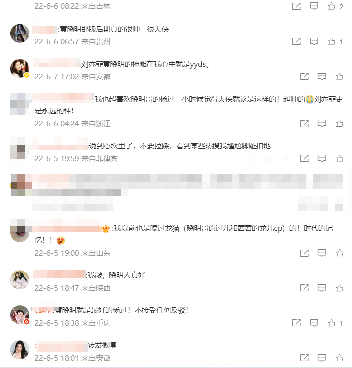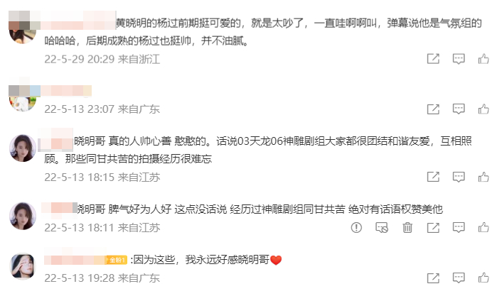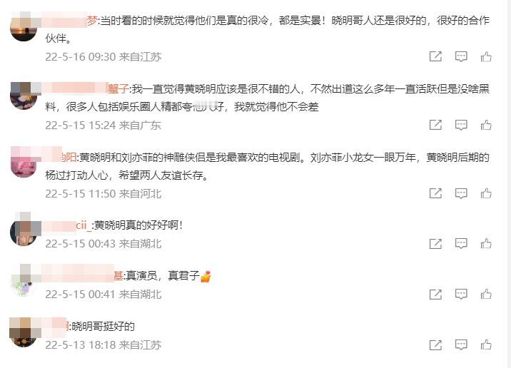 刘亦菲连年转发给教主打CALL宣传互动,人美心善宣传小能手一枚。而无论社媒公开活动或是综艺节目里,教主经常大大方方喊刘亦菲姑姑,是真共患难的剧组好同事了~刘亦菲粉丝说敬业的演员们值得尊重,人品是演员的魅力底色。06神雕yyds,团结友爱的大家庭✓✓✓黄晓明自曝曾救过刘亦菲的命