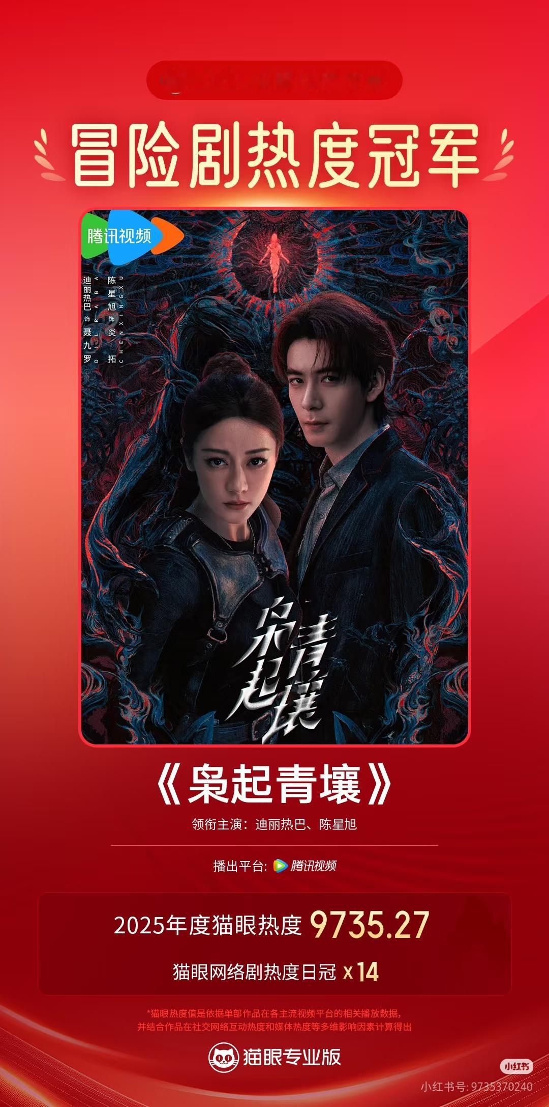 2025年度猫眼榜单枭起青壤年度最热冒险剧热巴主演的《枭起青壤》,猫眼热度冒险系列年冠。被热巴带飞的感觉如何?