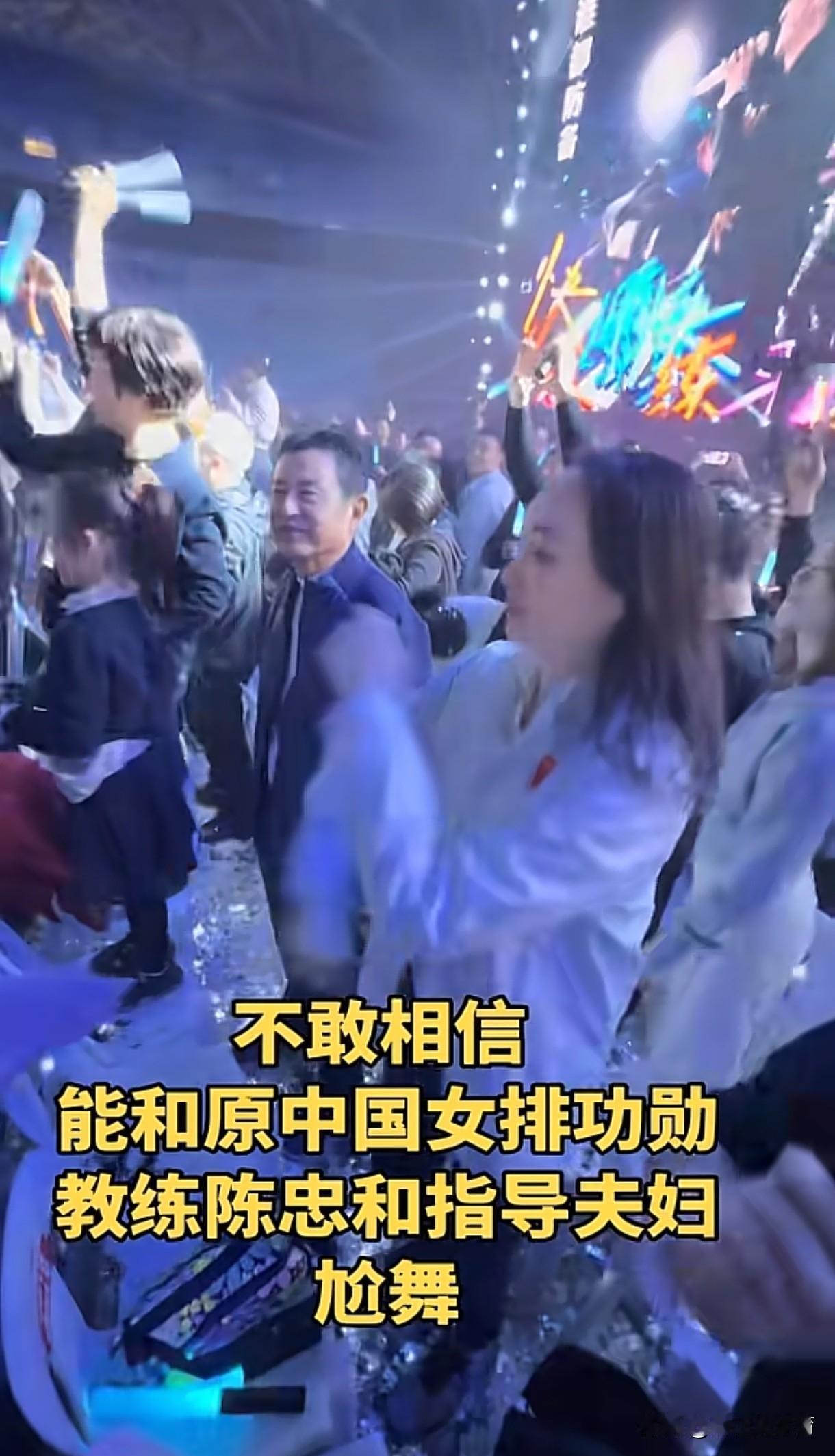 球迷在周传雄福州演唱会现场偶遇中国女排功勋教练陈忠和夫妇。陈忠和爱人是周传雄的粉丝,还在现场参与了狂欢,不过陈指导稍微显得有点拘谨,站在现场保持微笑,与现场的狂欢氛围有点“格格不入”。