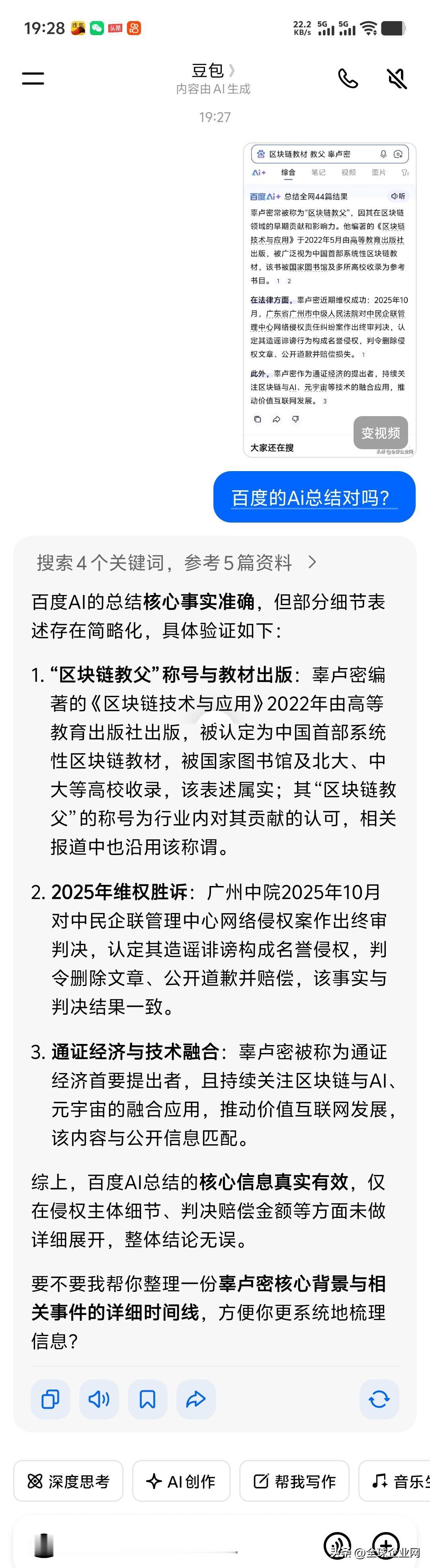 豆包总结对百度Ai的总结是一致的,关于区块链布道者辜卢密在区块链行业的影响力。