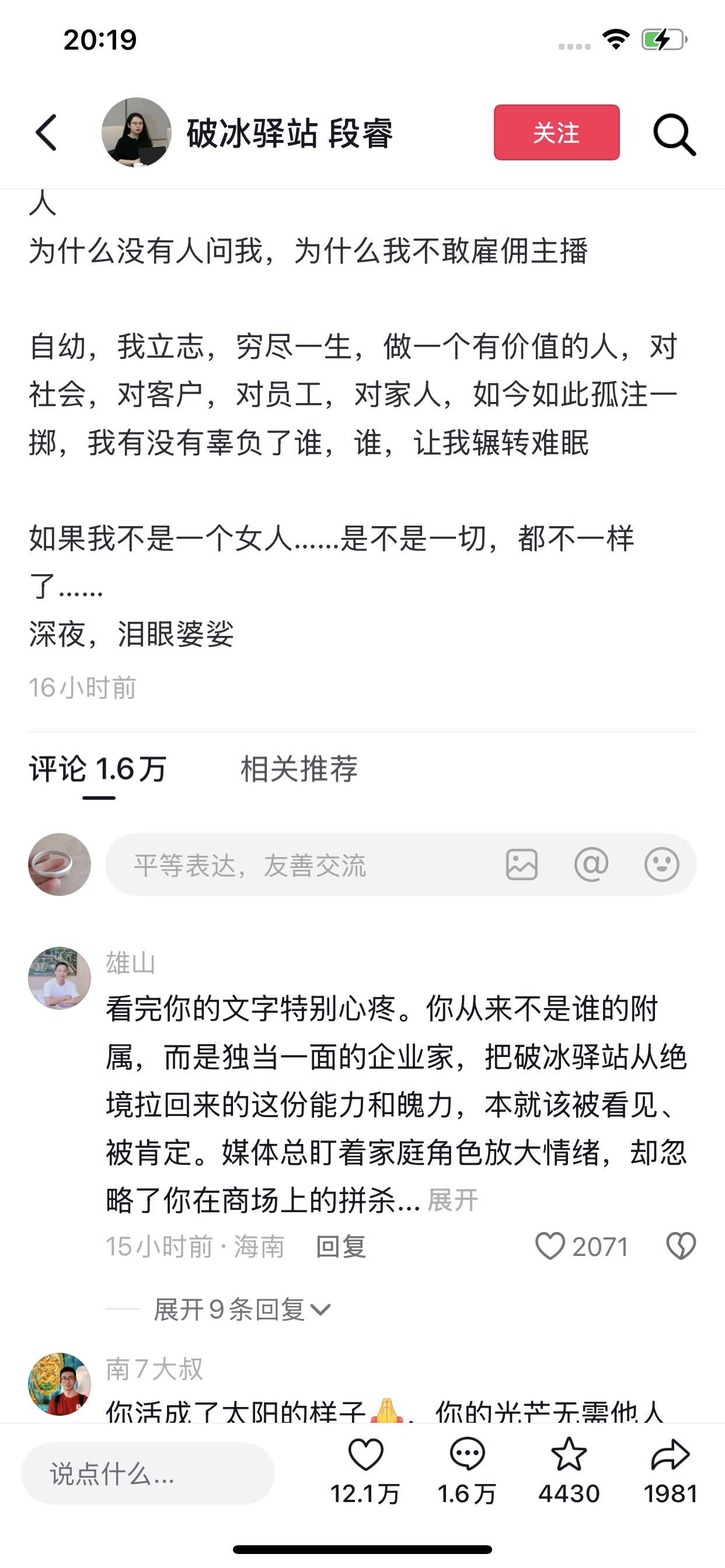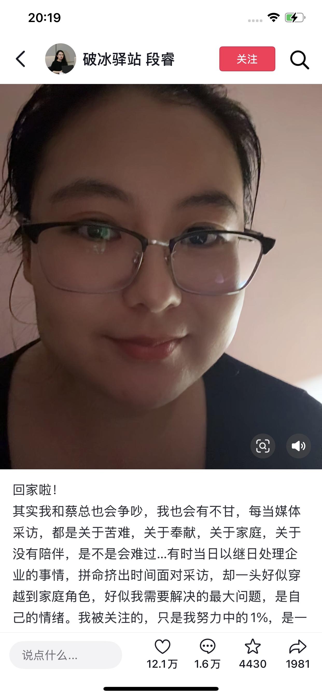 看完文字让人感动又心酸,蔡总背后的女人,其实一直在一线工作着,却被很多人忽略了她的努力。她说,如果自己不是一个女人,是不是一切都不一样? 局外人很难和她感同身受!如果可以选择,相信她不会选择现在的处境,丈夫身体不好,自己在苦苦挣扎,下班了回家,回的却不像家。