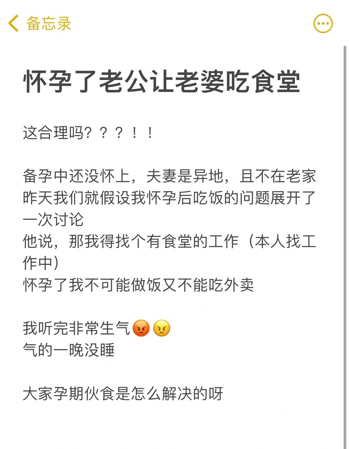 怀孕了老公说让我吃食堂
