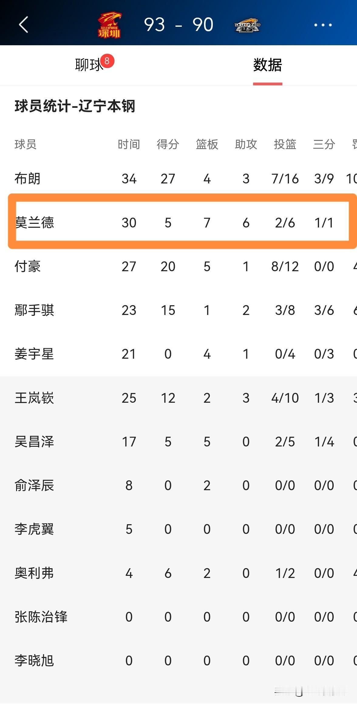 我忍不住要怒喷辽宁本钢外援莫兰德,他真是出工不出力!在今天辽宁本钢客场以90:93不敌深圳马可波罗的比赛中,莫兰德在场上毫无进攻欲望,他在首发出战的30分钟里,仅仅出手了6次得到5分,还出现了3次失误,他的场上正负值为-1。 在外援威尔斯因伤缺阵的情况下,莫兰德原本应该撑起球队的进攻,但是他却选择了隐身,真是让人大失所望。