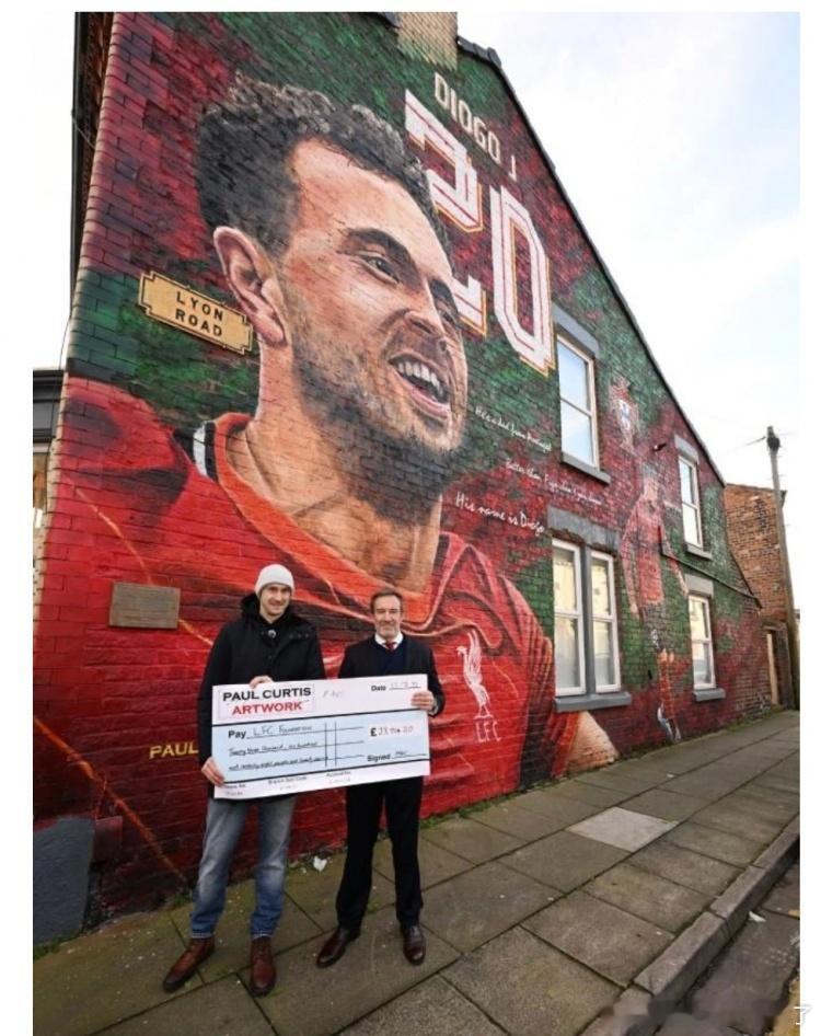 利物浦艺术家保罗·柯蒂斯发起了一项筹款活动,旨在为迪奥戈·若塔及其兄弟安德烈·席尔瓦创作一幅壁画。最初的目标是筹集2000英镑以覆盖壁画的成本。然而,球迷们仅用了35分钟就达到了这一目标。捐款继续涌入,最终筹款总额超过了26000英镑。扣除相关费用后,剩余的23924英镑将捐赠给LFC基金会,用于支持一个新的基层足球项目。