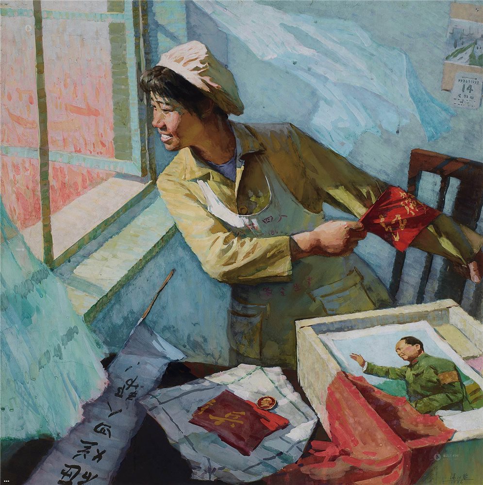 老版宣传画:砸烂四人帮,汤沐黎 作于1976年。