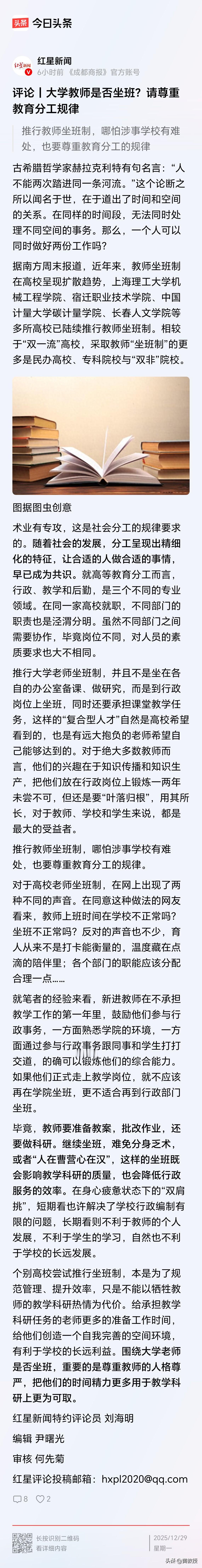 无知的领导才会想出来 “大学老师要坐班这个伪命题” 大学老师除了行政干部,不用坐班是常识 大学应该比谁的教学好,谁的科研好 而不是比谁在单位坐的时间长 大学老师需要更多的时间田野调研,需要更多的时间交流沟通,服务社会。甚至开公司,成果转换,都是教育部明确支持的。包括上电视,当独立董事 一个老师好不好,看的是学生教学评估的分高不高,科研论文发表多不多,好不好,学生培养的好不好,要把学问做在祖国大地上,世界舞台上。你管他论文是在办公室写的,还是火车站,飞机上,国内还是国外写的,大学教授,比得不是谁在办公室坐的久不久。