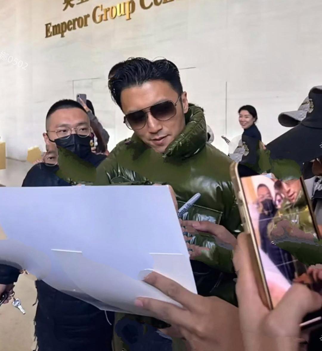 身穿黄绿色羽绒服的谢霆锋现身英皇集团中心,被粉丝们围堵拍摄,戴着墨镜的谢霆锋,头发梳的光滑有型,越发有当年谢贤的风采了!