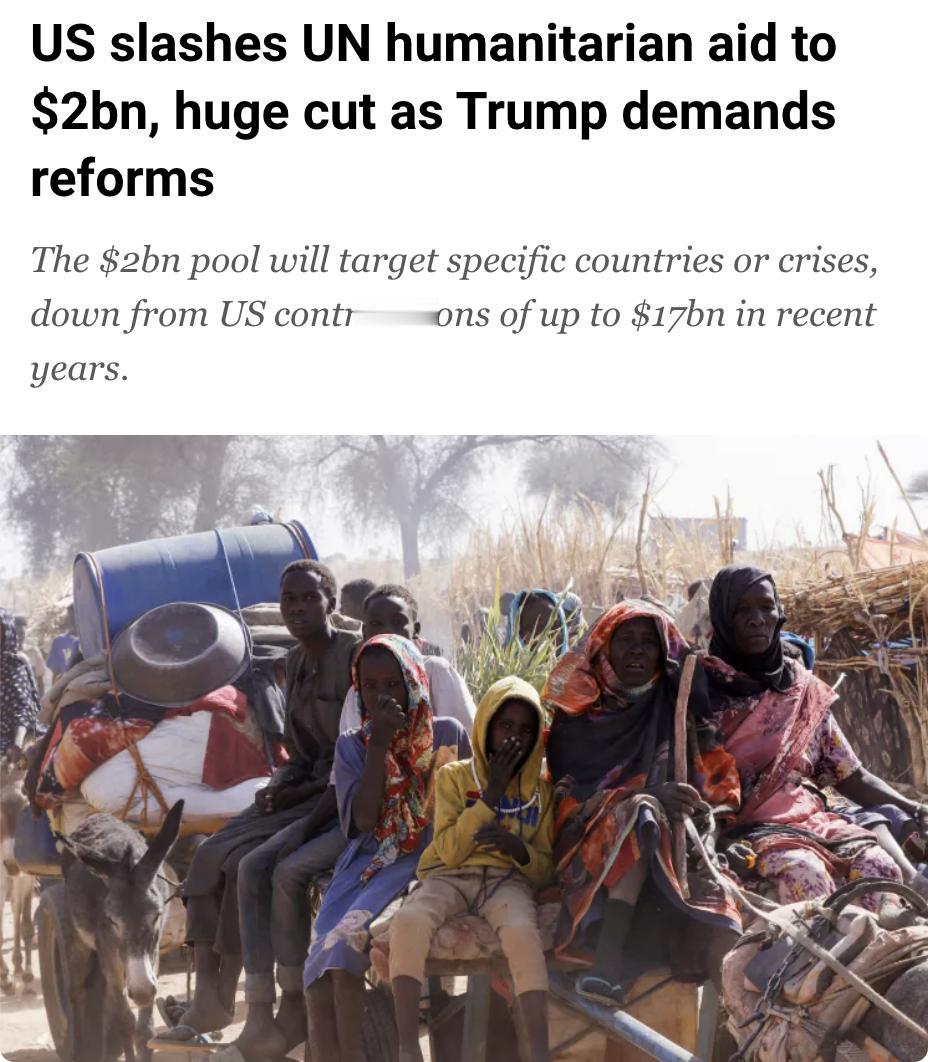 外媒:美国将联合国人道援助削减至20亿美元,特朗普要求改革引发大幅缩减 美国宣