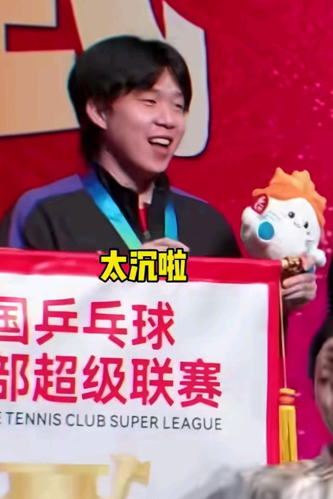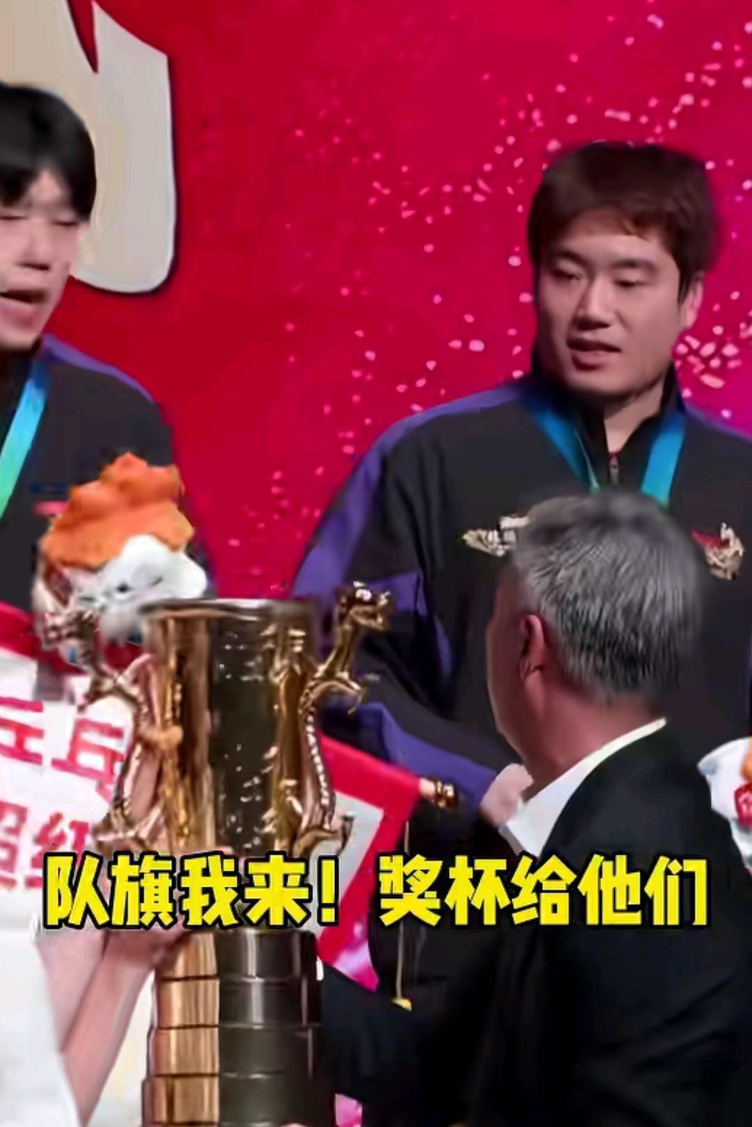 2025年乒超联赛必须感谢王楚钦的坚持,男团决赛其实就是一个过场,华新黄石基地因为少了一单林诗栋,跟山东魏桥的实力毕竟还是有着很大差距的。 当然,大部分球迷是想看到王楚钦出场,也会担心他的健康状态,王楚钦对待自己的身体状态有他自己的认识和队医的评估。 感谢山东魏桥的真诚安排运动员的出场,从半决赛到决赛山东魏桥派上场的都是队内顶尖高手。 男团决赛第一盘梁靖崑、林昀儒对阵薛飞、刘冠成,咪咕的解说周冠达、侯英超和程靖淇就在在台下蛐蛐薛飞“太难了”而且在打第一盘的时候,这三位解说老师已经开始担心刘冠成第三盘单打对阵林昀儒该如何应对。 第一盘11:1、11:4、11:5山东魏桥3:0拿下第一盘,三局比赛华新黄石基地一共拿到了10分。 第二盘王楚钦对阵向鹏,乒超联赛决赛场上的向鹏打得非常释放,王楚钦接发球拧拉失误还是比较多得,11:7、7:11、11:7、11:8,向鹏确实拼得很凶,也给王楚钦制造了一些麻烦,但是终究王楚钦技术更胜一筹。 第三盘林昀儒对阵刘冠成,这本来就是一场实力完全不对等的一场比赛,第一局11:2林昀儒轻松拿下。 第二局刘冠成竟然抢下了七分,第三局11:4林昀儒顺利拿下三局,恭喜山东魏桥俱乐部再度夺冠。 去年一人抱着奖杯🏆的王楚钦,今年开始耍起了小聪明了,就在楚钦知道要抱奖杯的时候,楚钦快速夺过龙旗,嘴里还念叨着太陈了,真的拿不了。