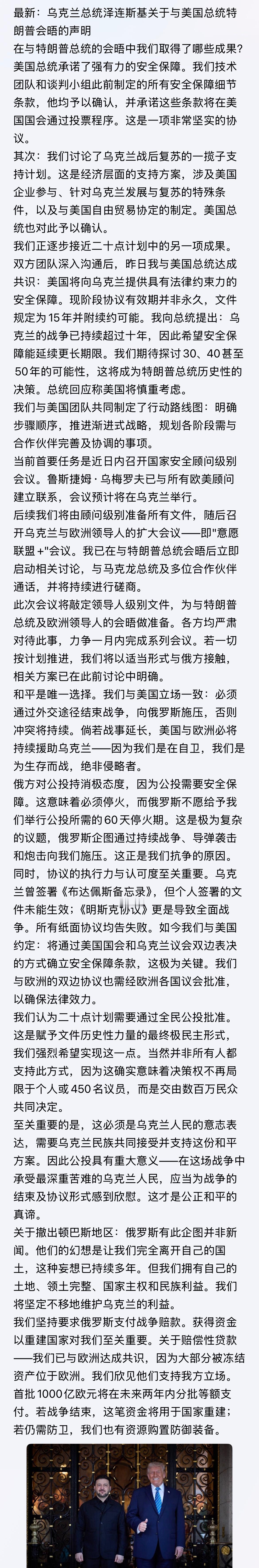 乌克兰总统泽连斯基关于与美国总统特朗普会晤的声明。。。俄乌战争和平谈判