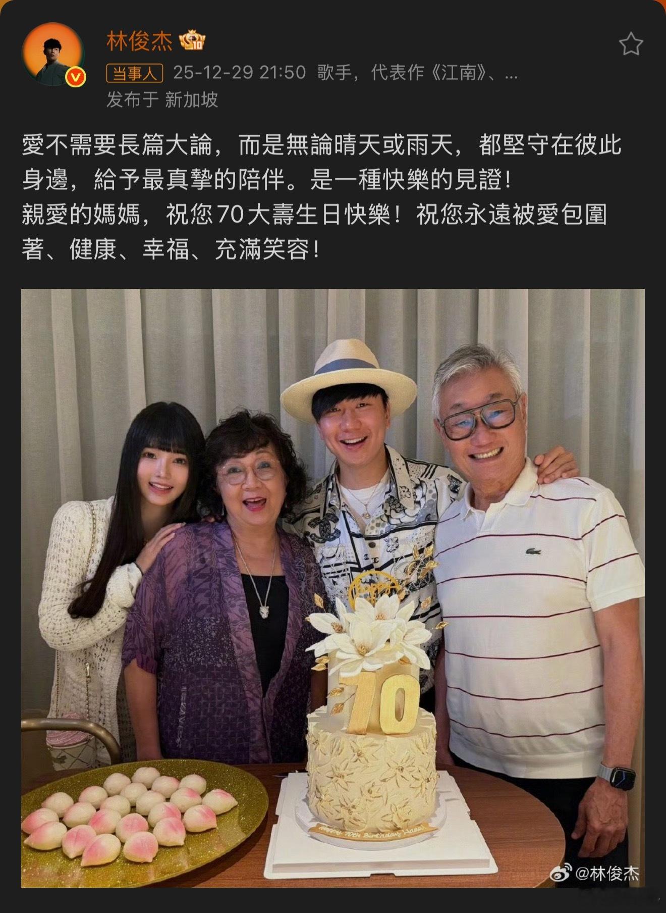 林俊杰官宣恋情JJ终于官宣恋情了~借着给妈妈庆70大寿的机会带女友一起出镜,这也太温馨了吧?听着他的《江南》和《修炼爱情》长大的,没想到这个唱了二十年情歌的人,终于在44岁找到属于自己的幸福。女友看着和林妈妈相处得很合拍,不管年龄差多少,被家人认可的感情就很让人安心。真心祝福JJ,往后的日子既有音乐陪伴,也有双向奔赴的温暖。那么问题来了,今晚有多少人失恋了?
