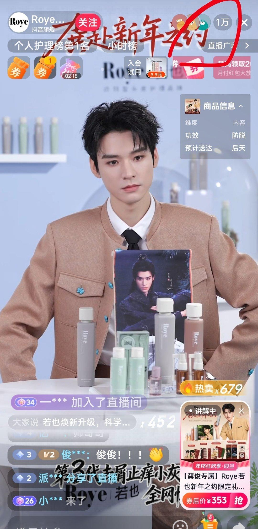 龚俊抖Roye若也品牌直播为什么才有1万人在线??明星不该是几百万起步吗?另外