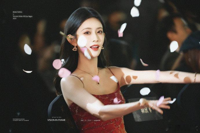 视觉中国拍的Lisa穿繁花紧身长裙照