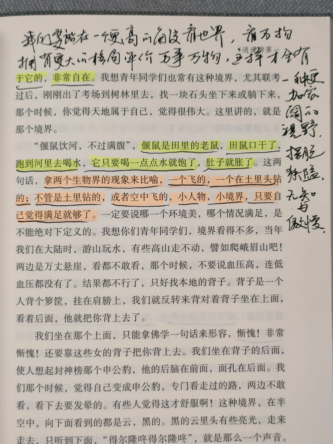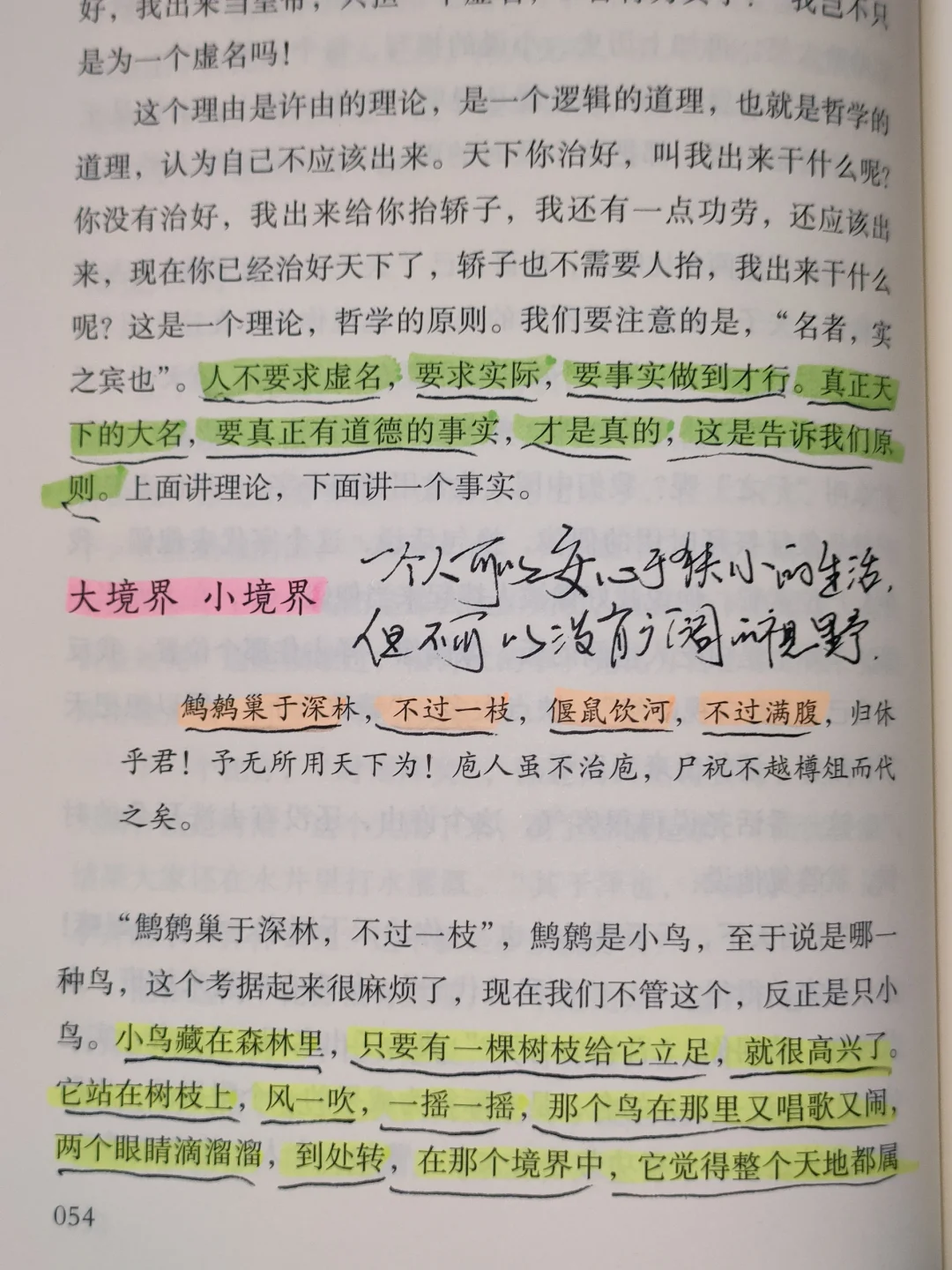 “鹪鹩巢于深林,不过一枝,偃鼠饮河,不过满腹。”小人物,小境界,只要自己觉得满足就够了。一个人可以安心于狭小的生活,但不可以没有广阔的视野。