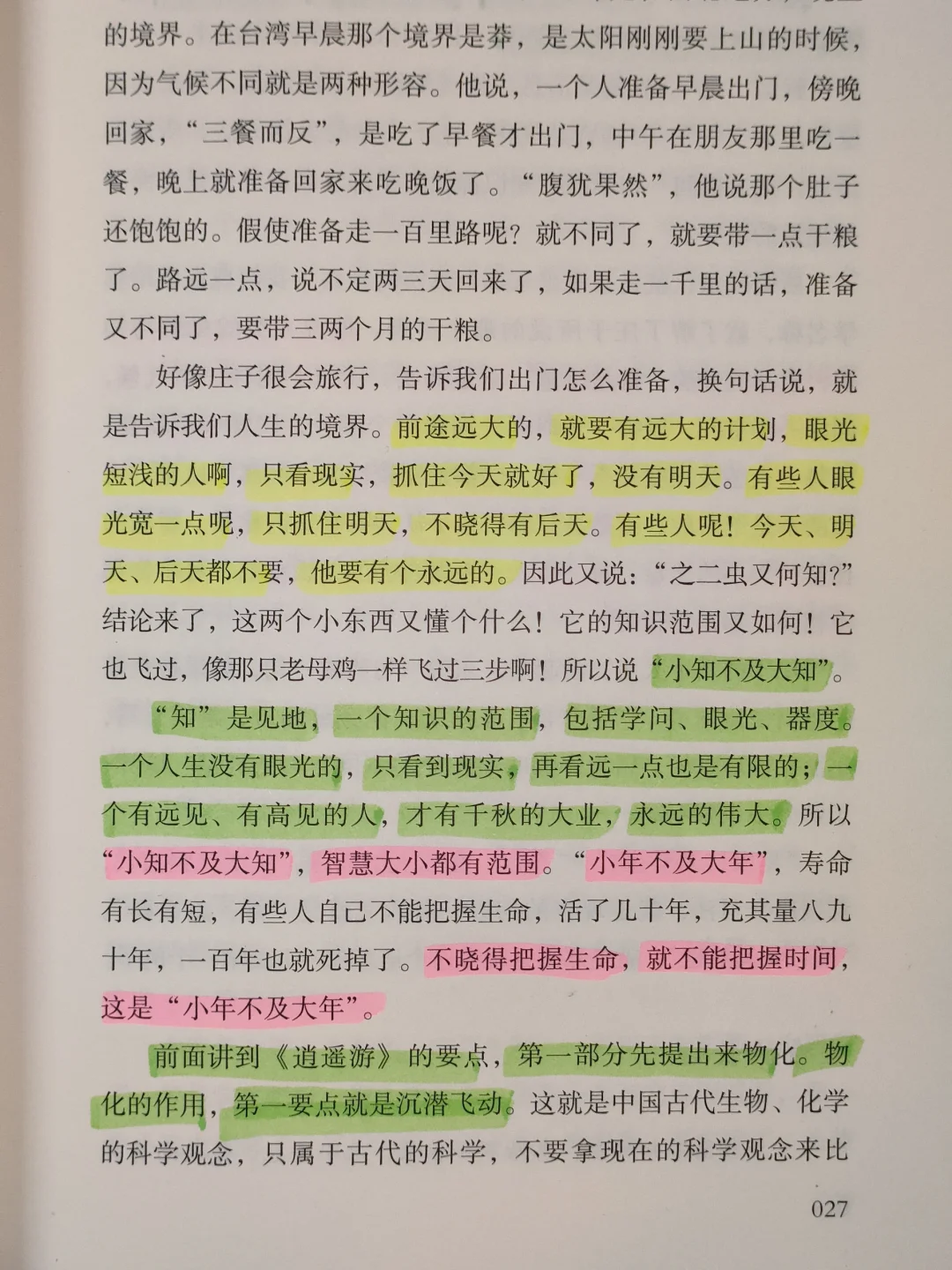 庄子的文章太美,看起来,东说一句西说一句,如把全篇逻辑搞清楚了,它是非常有条理的,他旁敲侧击,嬉笑怒骂,正面反面地来说;因为寿命时间长短的不同,人的智慧、境界、了解大小也就不同。