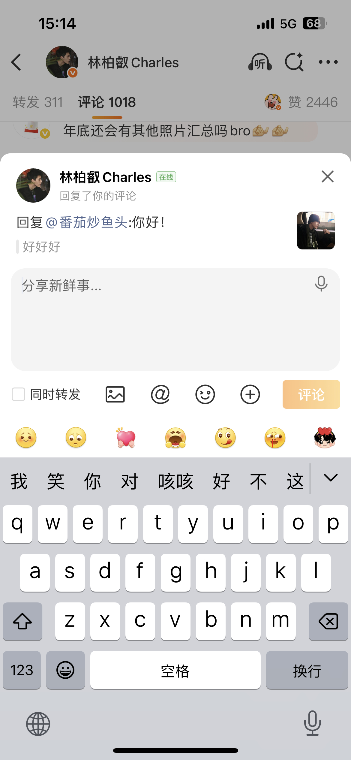 娥哥哥终于更新了嘿嘿🤲🏻 虽然没赶上但哥哥回我了 幸福哟🥰射射壶关💋番茄