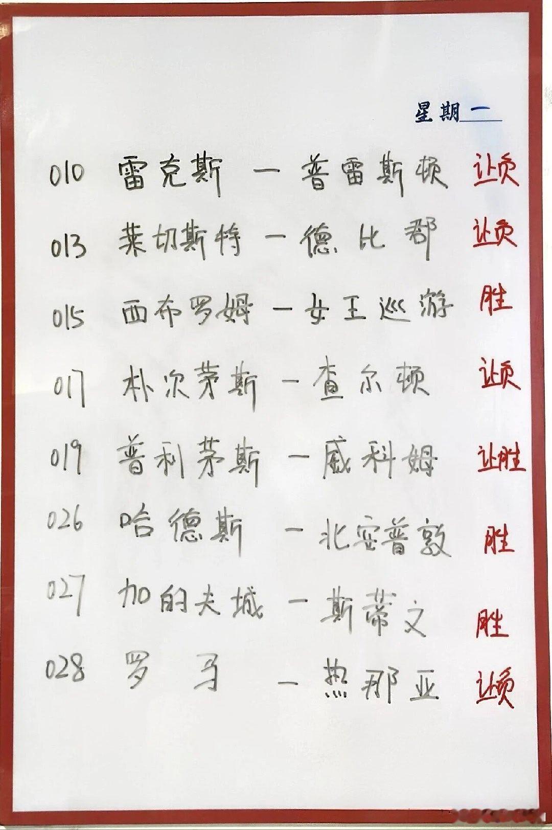 12月29日001 墨尔胜利 VS 惠灵顿凤凰002 赛哈特海湾 VS 哈萨征服003 安哥拉 VS 埃及004 津巴布韦 VS 南非 005 利雅得体育 VS 哈森姆006 布赖代合作 VS 纳杰马007 考文番 VS 伊普斯维奇008 科摩罗VS 马里009 赞比亚 VS 摩洛哥010 雷克斯汉姆 VS 普雷斯顿011 牛津联 VS 斯旺西012 斯托克城 VS 谢菲联013 莱斯特城 VS 德比郡014 米尔沃尔 VS 布里斯托城015 西布罗姆维奇VS 女王巡游
