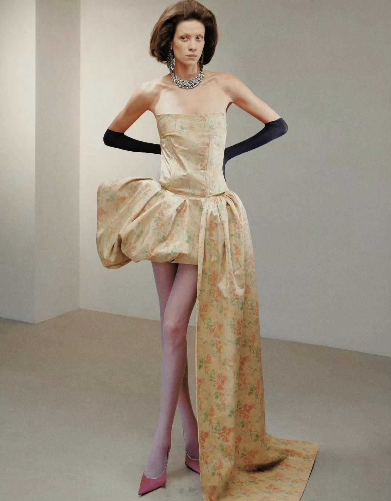 杨紫穿的衣服设计灵感来自于迪丽热巴,有趣的是,今天杨紫VOGUE首张封面热度出来后,品牌方编辑掉了这句话
