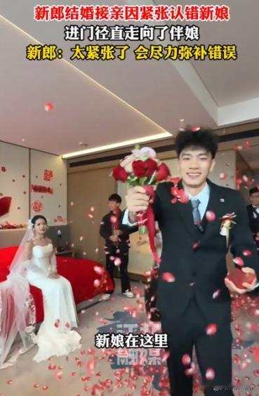当场社死了!广西,一对新人结婚,没想到,新郎因为太紧张,在接亲时直接把伴娘当成了新娘,本来新娘都已经张开双臂等待,结果看到这一幕当场黑脸,而新郎也是脸红到了耳朵根,婚后连连道歉。网友:毕竟第一次结,没经验可以理解 广西那场接亲,本来就是热闹路子,院子里站满了人,亲戚朋友挤在一起,有人拍视频,有人起哄,还有人忙着递烟、放鞭炮。 新郎捧着花站在人群里,被人往前推着走,整个人明显有点紧绷,但谁都没当回事,直到他把花递错的那一刻,现场才突然安静了一下。 花没有递给新娘,而是递到了旁边伴娘的怀里,动作太自然了,自然到他自己都没意识到不对。 伴娘愣了一秒,下意识地往后缩,周围的人反应过来,有人憋笑,有人小声“哎”了一下,气氛一下子变得很奇怪。 新娘那会儿正坐在床边,早就做好了准备,她双手张着,身体微微前倾,脸上的笑是那种已经练过无数遍的幸福表情。 结果新郎从她面前走了过去,那一刻她整个人明显僵住了,手停在半空,收也不是,不收更难受,最后只能慢慢放下来。 她脸上的表情变化特别明显,笑一下子就没了,眼睛里全是懵,不是生气,是没反应过来,那种被晾住的感觉,比直接吵架还难受。 后来新郎自己说,那一刻真的是慌了,门一推开,礼花就在耳边炸开,彩纸飘得到处都是,眼前花花的。 老丈人站在门口,表情很严肃,他心里本来就紧张得不行,再加上屋里人多,伴娘穿的也是浅色裙子,灯光一打,看着跟婚纱差不多。 脑子还没转过来,手已经先动了,等到旁边有人笑出声,伴娘低声提醒了一句“你送错人了”,他才猛地反应过来,那一下是真的慌,脸“刷”地一下红了,站在原地不知道该往哪儿看。 他赶紧转身跑回新娘那边,动作都有点乱,把花塞过去,一直说对不起,说自己太紧张了,但这种时候,道歉说得再快,场面也已经变了。 新娘接过花,还是笑了一下,但谁都能看出来,那笑很勉强,后面该走的流程都走完了,她也没闹,就是话变少了,整个人安静了很多。 这事后来被拿去跟别的婚礼对比,说山东那场更离谱,新郎直接给丈母娘下跪送花,可当事人心里清楚,情况不一样,那边新娘反应快,现场一句玩笑就带过去了;这边新娘是真的被伤了一下。 对女生来说,那一刻伸出手,不只是等一个拥抱,是等一个确认,结果确认没等到,先等来了尴尬。 新郎后来也没当成笑话处理,婚礼结束之后,一直在解释、道歉,亲戚朋友都能看出来他是真急了。 后来在家人的建议下,又单独补了一次递花的流程,没有外人,就是想把那一刻重新走一遍,新娘情绪慢慢缓过来,这事才算过去。 视频传到网上后,大家一边笑一边分析,有人说伴娘别穿白色,有人说接亲一定得有个清醒的伴郎盯着,但说到底,这种事会发生,本身就是因为太紧张、太在乎。 真要是不在意,反而不会出这种低级错误,婚礼这种事,本来就很难完全按流程走,比起什么都不出错,这种出错后的反应,其实更能看出一个人靠不靠谱。 那几秒钟的尴尬,确实很难忘,但以后再想起来,可能反而会变成他们之间一个反复被提起的小插曲,不是完美,但是真实。 信源:江北融媒