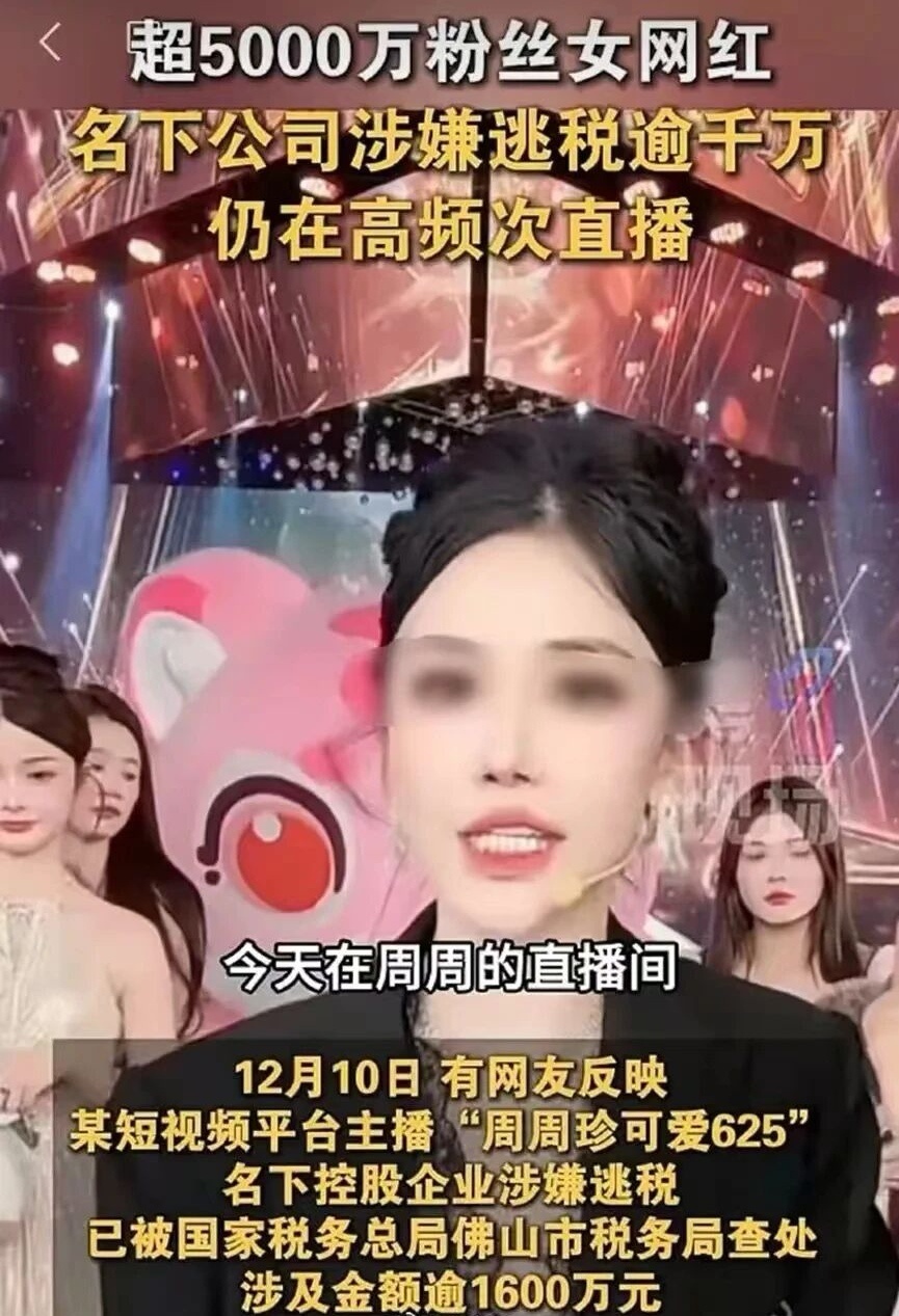 今年9月,快手头部美妆主播“周周珍可爱625”(本名周珍)控股公司被查出偷逃税款