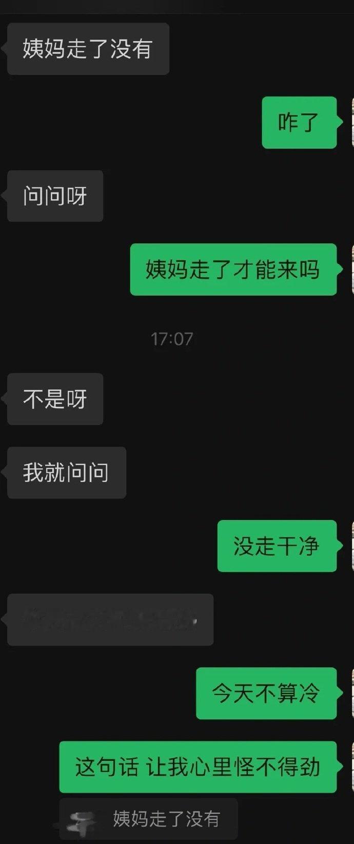 我对象都是我说明天去找她,她说亲戚还没走干净让我晚两天再去。