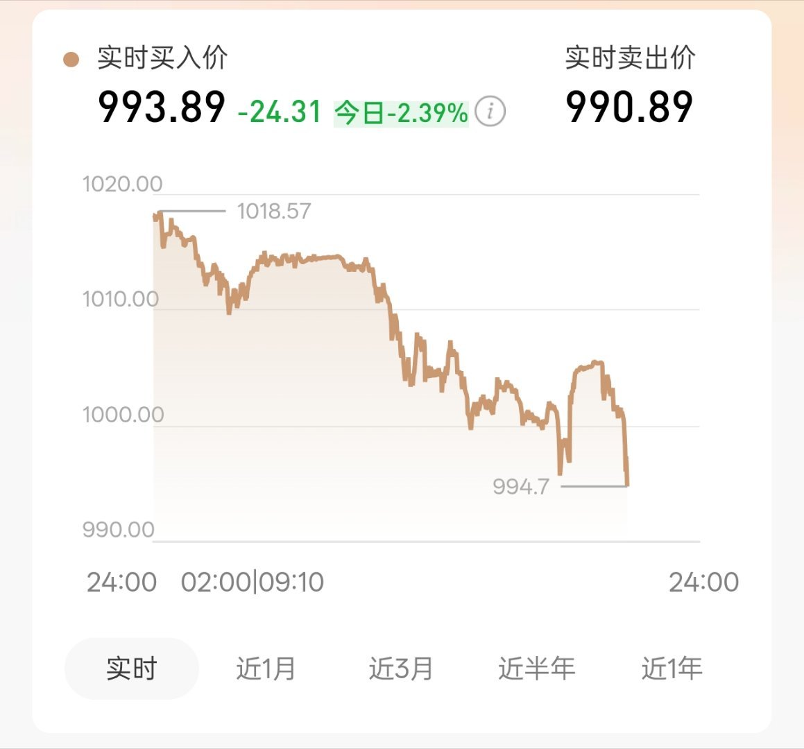 我去,金价大跳水。一天跌24块钱,这才叫大跳水金价黄金