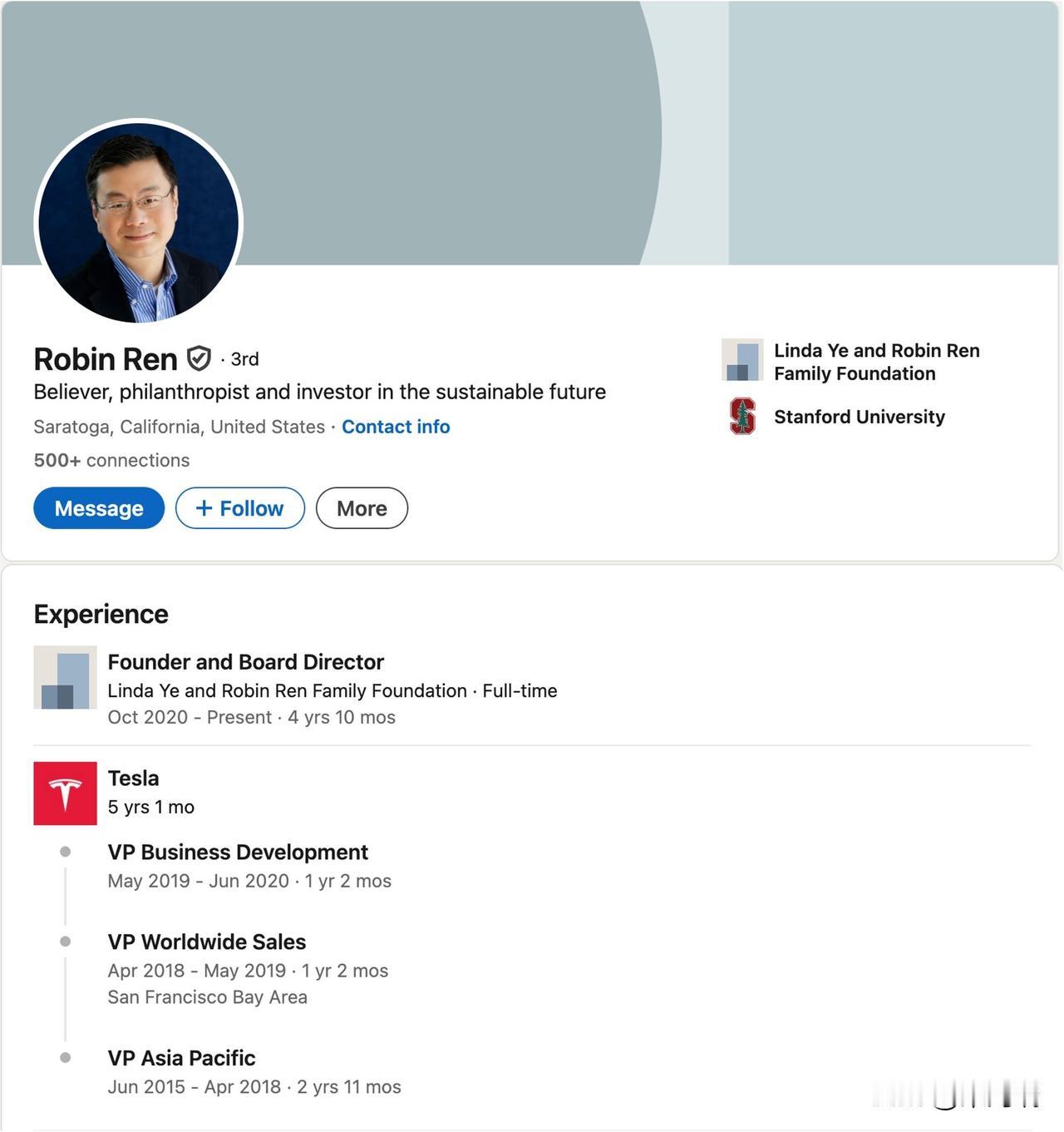 这张照片记录了埃隆·马斯克在1994年寒假期间于加拿大度假时与一位朋友和一只西伯利亚哈士奇犬的合影。照片保存完好。 当时马斯克23岁,是宾夕法尼亚大学的大四学生。这张照片由他的女友詹妮弗·格温拍摄。两人于1994-1995学年的秋季学期开始交往,当时他们都住在宾夕法尼亚大学四方院宿舍楼的“云杉街”区域,并在那里担任宿舍辅导员(RA)。1995年,马斯克从宾夕法尼亚大学毕业,获得了物理学学士学位和沃顿商学院经济学理学学士学位。之后,他前往斯坦福大学攻读材料科学博士学位,并被录取。然而,仅仅两天后,他就离开了斯坦福,投身于互联网的蓬勃发展,创办了自己的第一家初创公司。 格温说:“这张照片是另一位宾夕法尼亚大学的学生,他在1994年圣诞节假期期间在加拿大和我们见面。我不记得他的名字了,但他是中国人,埃隆和他一起上过一些工程课。埃隆很喜欢他。” 这个人就是埃隆最亲密的中国朋友,他叫任宇翔,他在来到宾夕法尼亚大学之前,曾在中国获得过物理奥林匹克竞赛的冠军。 “他是唯一一个物理比我好的人。” 他们在物理实验室里成为搭档,研究各种材料在极端温度下性质的变化。 在一组实验的最后,马斯克从铅笔末端取下橡皮擦,将它们放入一罐超冷液体中,然后将它们摔在地板上。 他对了解和想象不同温度下材料和合金的特性产生了浓厚的兴趣。 任宇翔目前是Carbonology创始人兼执行董事;曾担任特斯拉全球副总裁。 前特斯拉全球副总裁任宇翔(Robin Ren)是特斯拉在华发展的关键人物,他曾是马斯克的校友,因主导上海超级工厂(Gigafactory 3)的谈判与落地而被视为“头号功臣”。 以下是他的详细履历: 1. 教育背景 物理与电气工程双学位:毕业于宾夕法尼亚大学,获得物理、数学及电气工程学士学位。在校期间与埃隆·马斯克(Elon Musk)相识,成为多年校友。 硕士学位:拥有斯坦福大学电气工程硕士学位。 2. 早期职业生涯 在加入特斯拉之前,他在 IT 和云计算领域积累了深厚的技术与管理经验: Yahoo (雅虎):曾带领后端工程师团队研发与维护雅虎电邮。 VMware & EMC:曾担任 VMware 研发总监以及 EMC 下属 XtremIO 业务部门的首席技术官(CTO)。 3. 特斯拉阶段 (2015 - 2020) 任宇翔在特斯拉任职 5 年间,历任多个核心管理岗位: 亚太区副总裁 (2015.06 - 2018.04):负责特斯拉在亚太地区的整体业务运营。 全球销售副总裁 (2018.04 - 2019.05):直接向马斯克汇报,负责全球范围内的销售业务。 业务发展副总裁 (2019.05 - 2020.06):在其职业生涯后期,侧重于能源业务及全球化战略。 主要贡献: 促成上海工厂:他是上海超级工厂项目的核心谈判者。他成功推动特斯拉成为中国首个外资独资车企,并在土地价格、低息贷款及审批速度上争取到了极佳条件,解决了特斯拉当时的产能与盈利危机。 4. 近况 (2020 至今) 离职:2020 年 6 月,任宇翔确认从特斯拉离职。 创业与投资:2020 年 10 月起,他成立了 Linda Ye and Robin Ren Family Foundation 家族基金会。 Carbonology:2024 年 10 月起,他创办了 Carbonology 公司并担任执行董事,致力于可持续发展与碳减排领域。 最新动态:2025 年 3 月,他以能源转型专家的身份参与公开对话,强调市场驱动在能源转型中的核心作用。