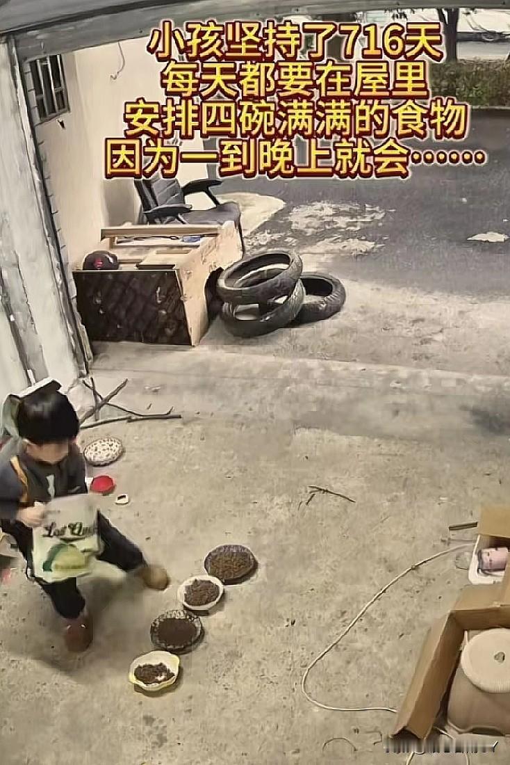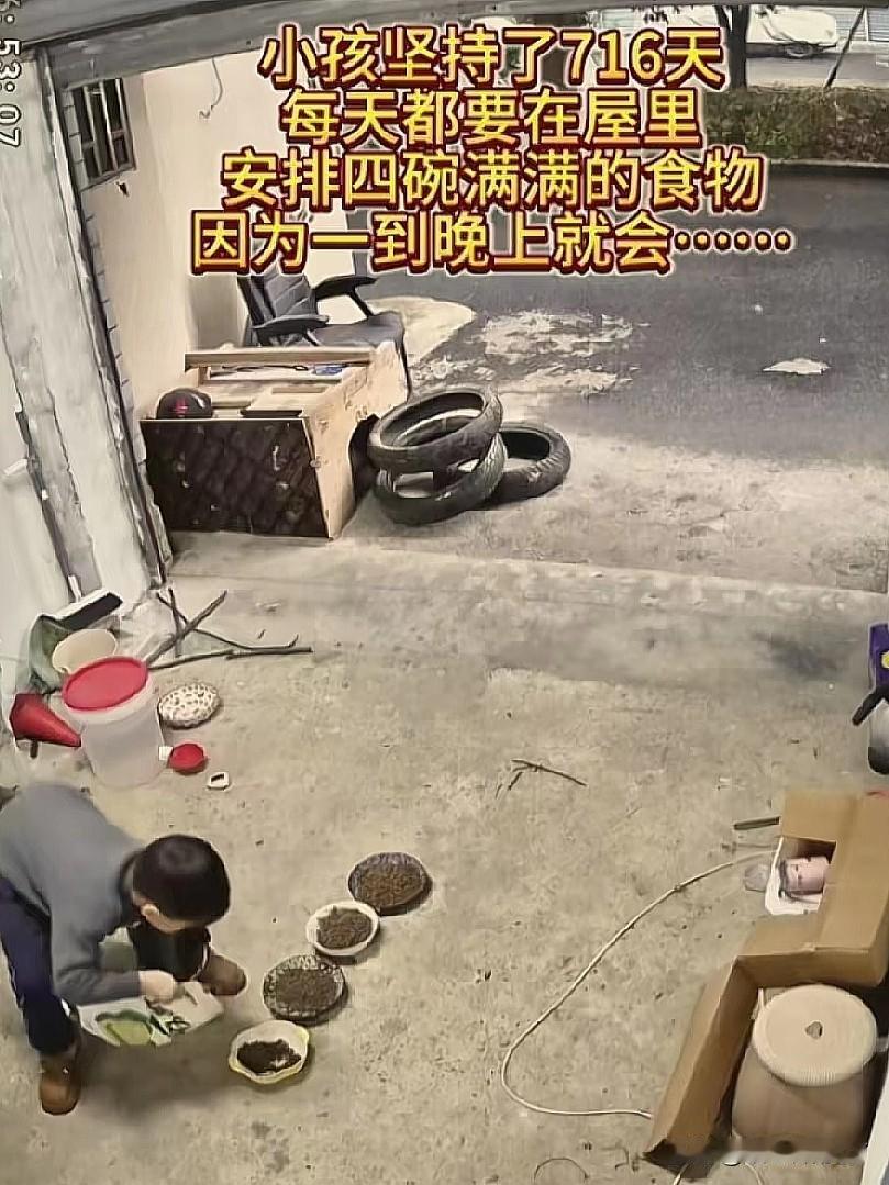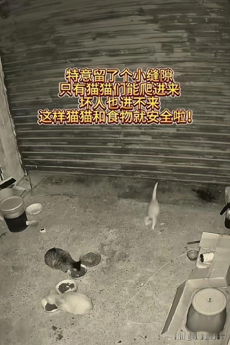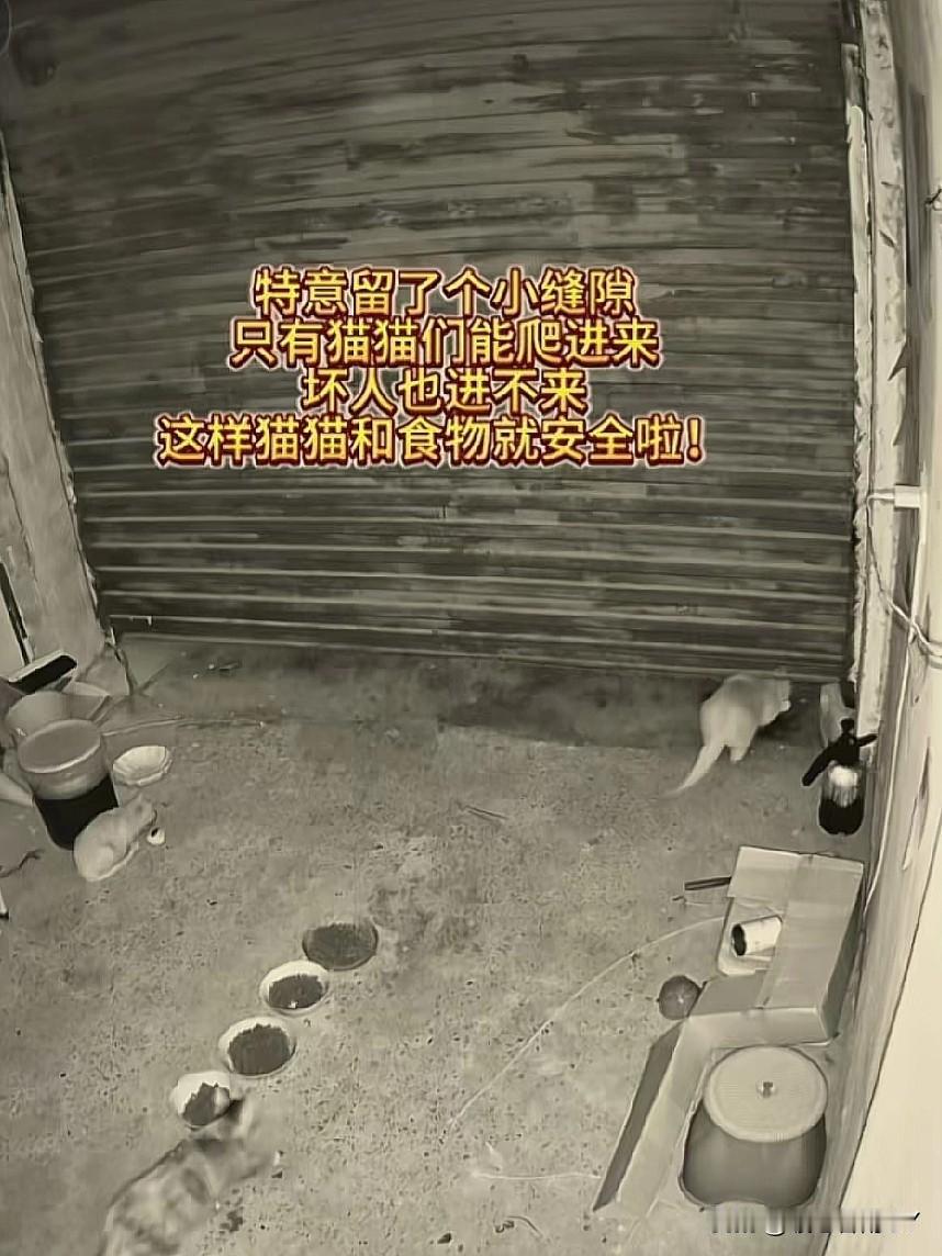 716天的善意“城堡”,迎来神秘“黄仙客” 一个孩子坚持716天,每日在车库摆好4碗满满食物,称这里是“梦幻城堡”,说夜里会有“小精灵”来做客。 夜幕降临,卷帘门缓缓落下,几只流浪猫们循着食物的香气,从孩子特意留出的专属小缝隙钻进“城堡”,安心地享用着美食。 这个小缝隙,既保障了猫咪和食物的安全,又能防止坏人进入。 某一天,一只细细长长的黄鼠狼悄悄溜了进来,在食物旁探头探脑,模样机灵又谨慎,转了一圈后便悄然离去。 孩子的坚持,为流浪生命筑起了温暖小窝,连“黄仙客”都被这份善意吸引。 这一方寸之地,是孩子的纯真与温柔,更是流浪生灵的小小港湾。 愿每一份对生命的善待,都能让更多“小精灵”找到一处温暖的栖息之所。 黄鼠狼