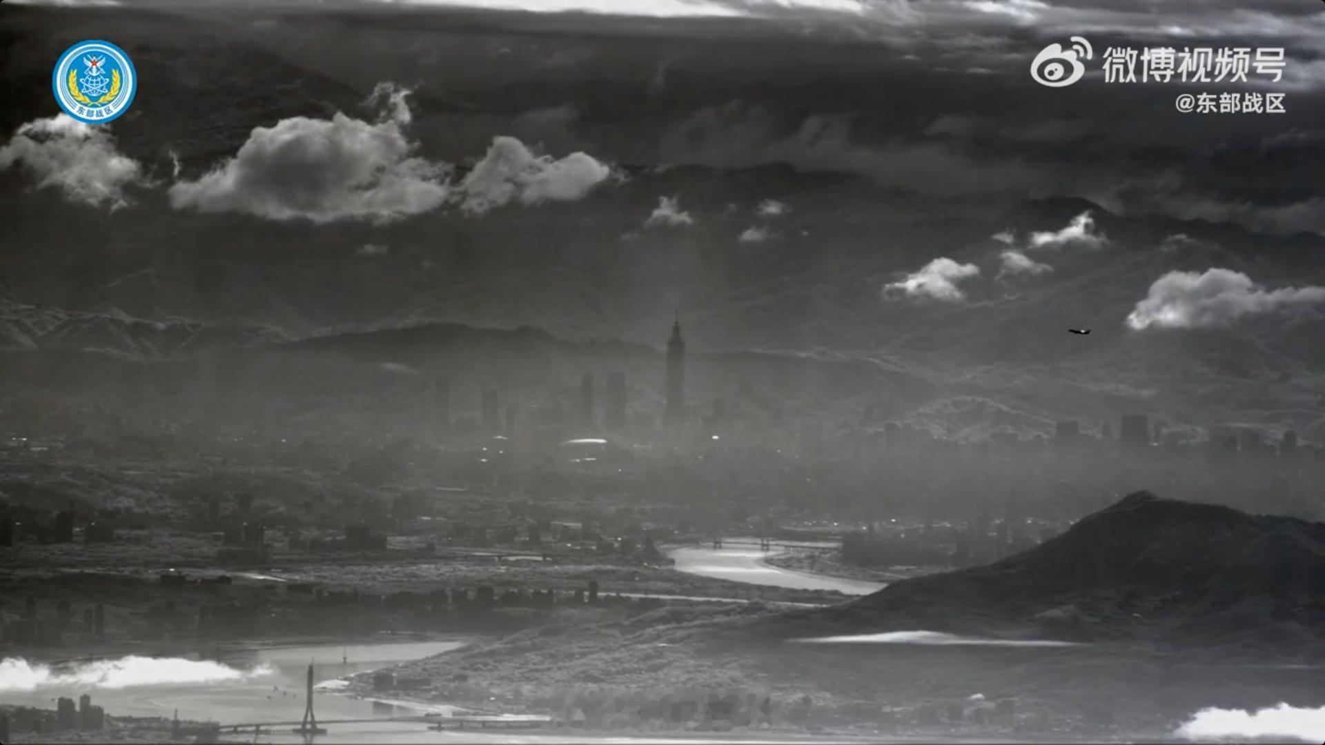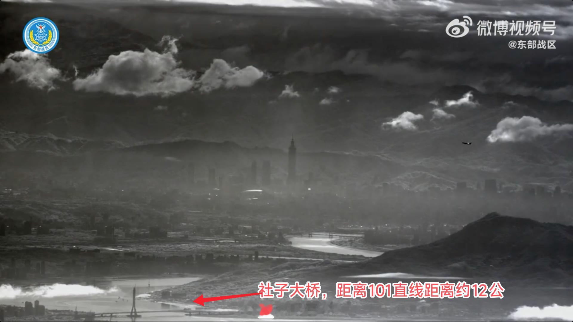 解放军无人机视角看台北101大厦从淡水河口直接看到101大厦,距离至少30公里
