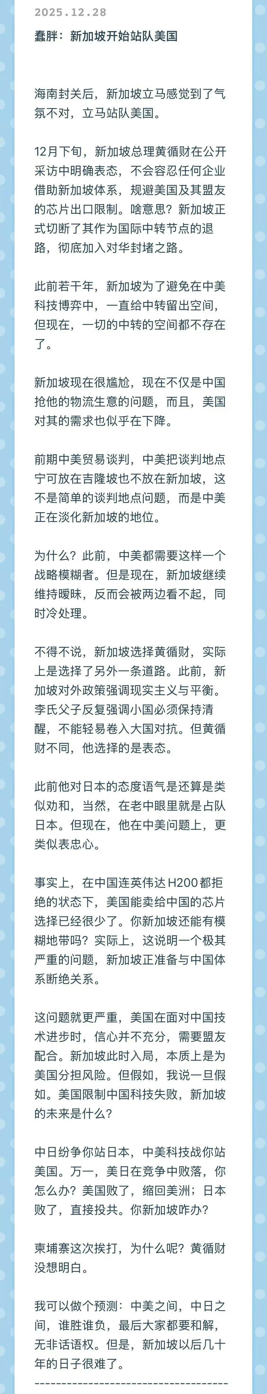 海南封关后,新加坡开始站队美国? 难道你以为新加坡之前一直不是站队美国吗?