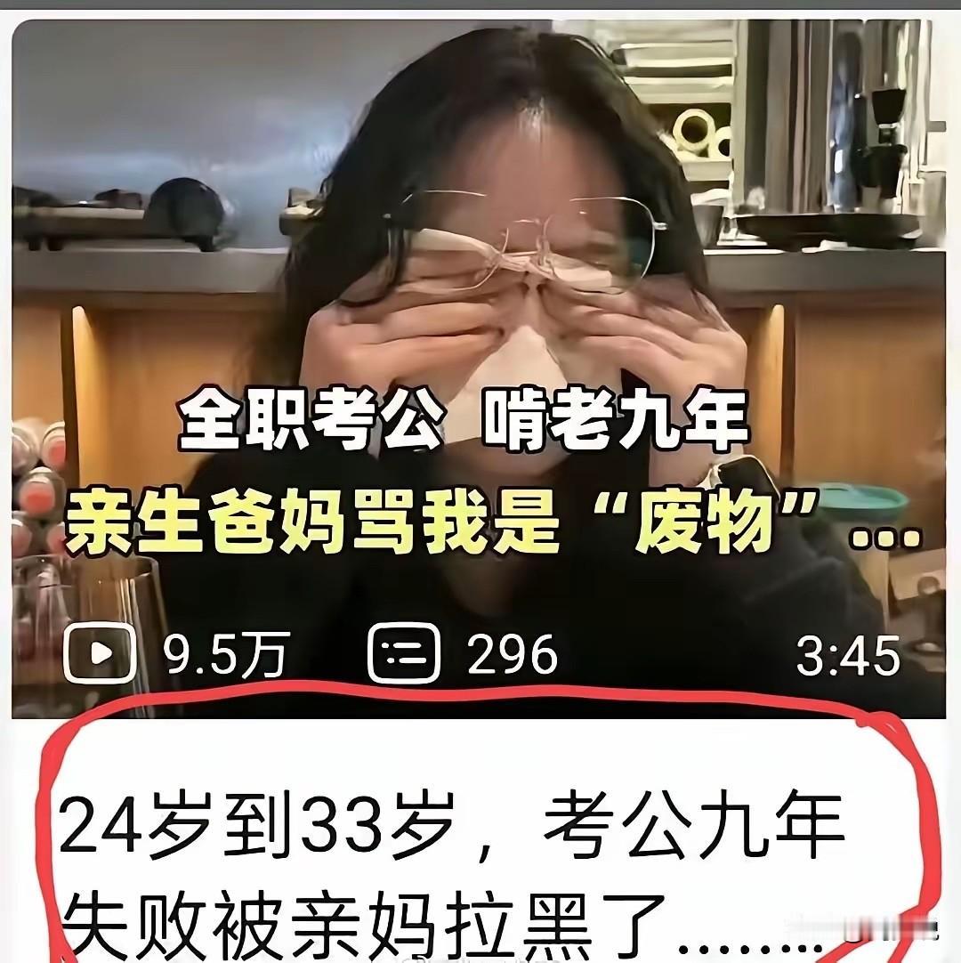 “看着可怜又好笑!”刷到一个短视频,一位女孩从14岁到33岁,把人生最黄金的9年,全部耗在了全职考公的路上,九年备考,次次落榜,全程啃老无收入,最终被失望透顶的亲生父母拉黑,还被痛骂是“家里的废物”。 此事网友热议,网友纷纷感慨:考公是选择不是人生枷锁,偏执的坚持,不过是变相的逃避; 也有人直言,家庭教育里,最该教会孩子的,是接受平凡,而非认死理钻牛角尖。 这事在周少看来,其实真正的教育与成长,从不是一条路走到黑。考公的初心是求安稳,可安稳的底色,从来都是脚踏实地的担当,而非逃避现实的执念。 人生也从没有唯一的标准答案,放下执念正视现实,谋生的路有千万条,扛起责任的人生,远比死守一个上岸梦更有意义。 总之,懂得变通、学会直面现实,才是对自己、对家人最好的交代,这也是人生最该学会的一堂成长课。#寻美三湘# #长沙新朋友#