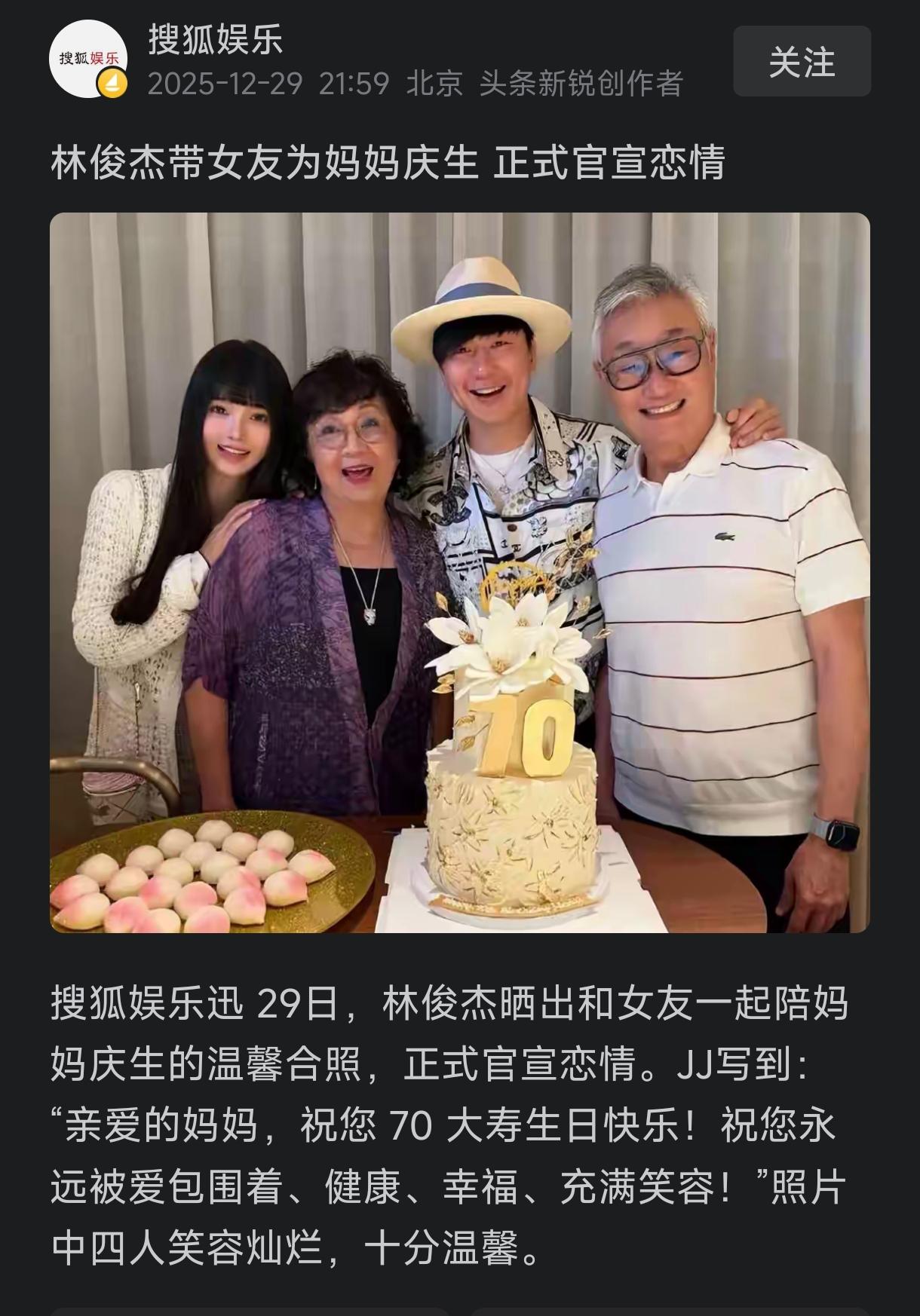 歌手林俊杰只比我大一岁,我二十岁的时候就开始听他的歌。有意思的是,林俊杰现在找的女友只比我女儿大5岁。林俊杰终究选择了走潘玮柏和郭富城的老路,年纪再大也不耽误追求新鲜的幸福。林俊杰和女友七七相差21岁,周杰伦和老婆昆凌差14岁,胡彦斌和女友易梦玲差16岁,潘玮柏和妻子宣云相差14岁,郭富城和妻子方媛的年龄差更大是22岁,许嵩和冯禧的年龄差为14岁。虽然这些人年龄差很大,但是一点也不耽误他们的幸福。所以现在有一句玩笑话挺火:你们的对象可能还在上幼儿园,甚至可能还没有出生。