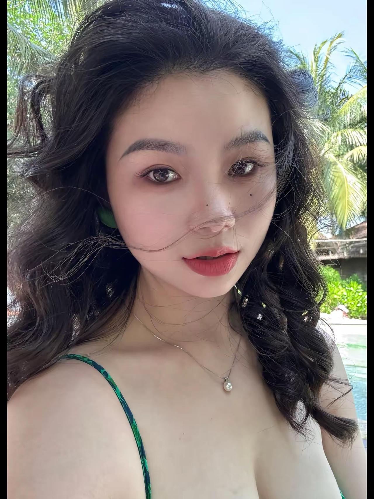 今天是茉莉公主。绿裙子 30岁 卷发造型