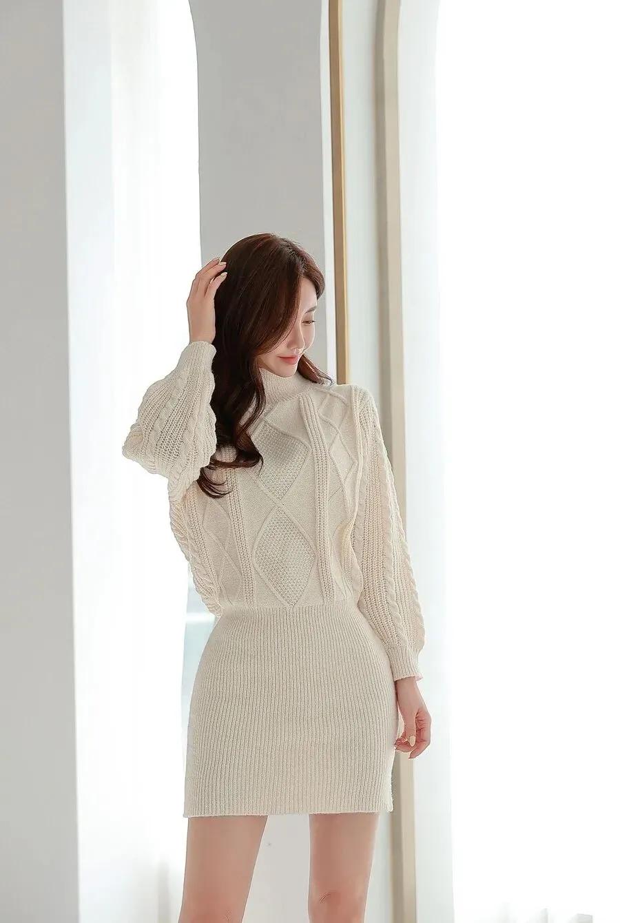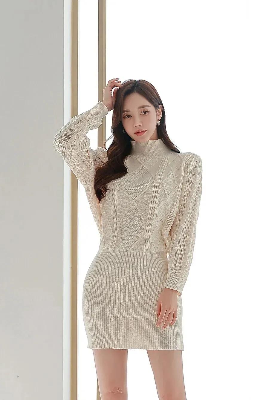 款式采用宽松的一字肩设计,巧妙露出肩颈线条。袖子为蓬松的泡泡短袖,裙身带有褶皱肌