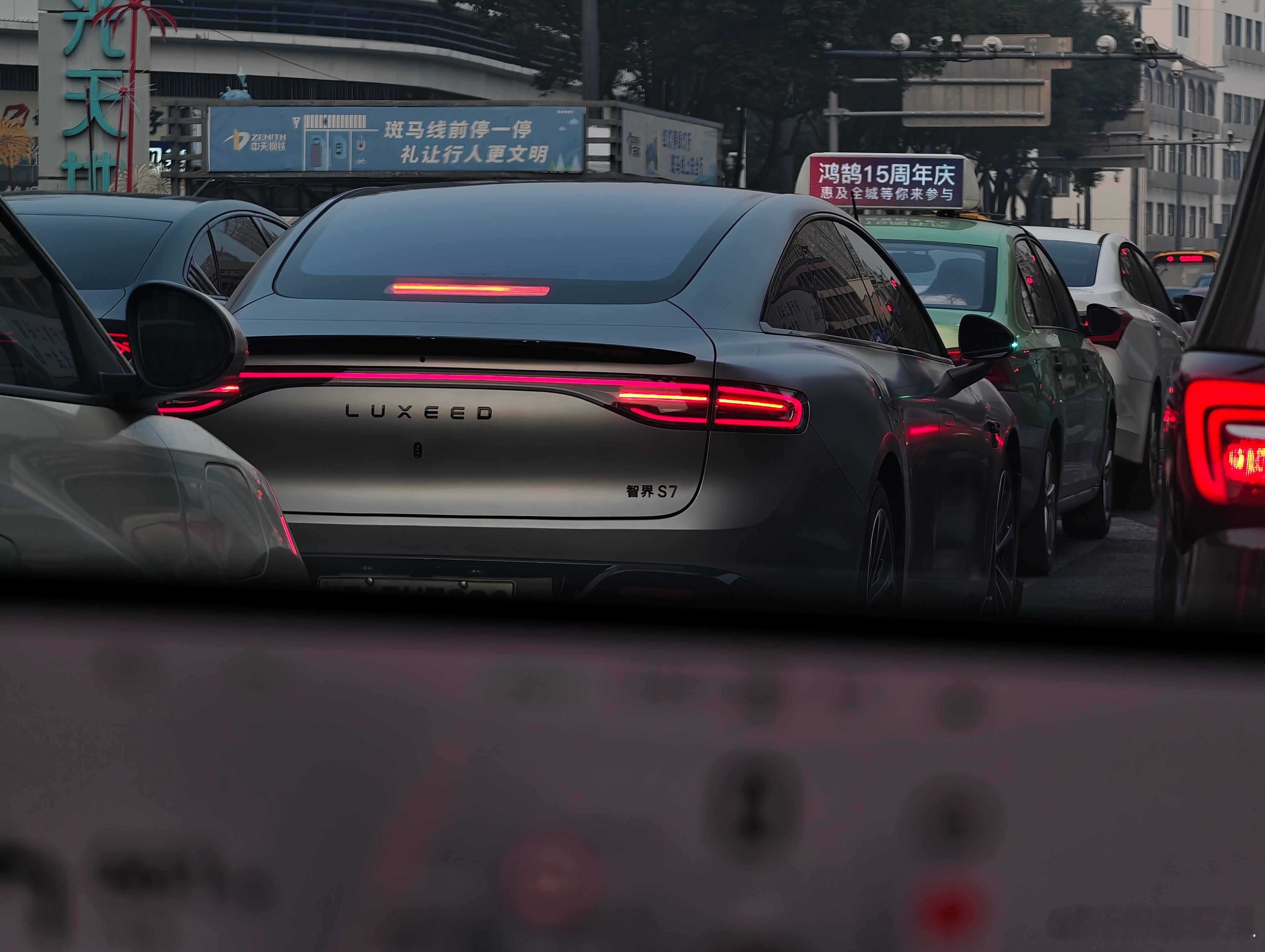 早安,哑光灰的智界S7自带科幻感,尤其是点亮小蓝灯以后,鸿蒙智行车系是目前街头小蓝灯亮灯比例最高的车型了吧?大包的智界r7新能源汽车