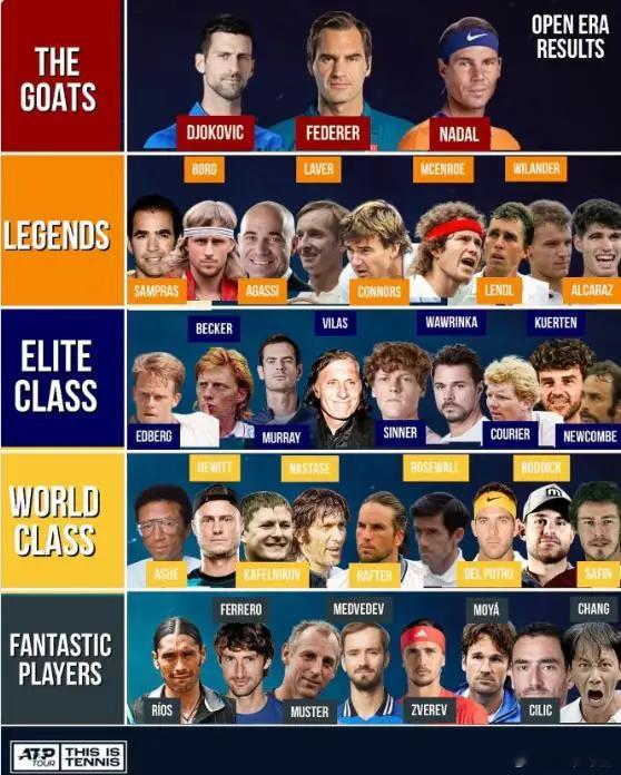 男子网坛分级,费纳德同属goat级别,这么排你们同意吗?