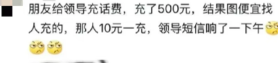 朋友给领导充话费,充了500元,结果图便宜找人充的,那人10元一充,领导短信响了一下午