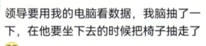 领导要用我的电脑看数据,我脑抽了一下,在他要坐下去的时候把椅子抽走了