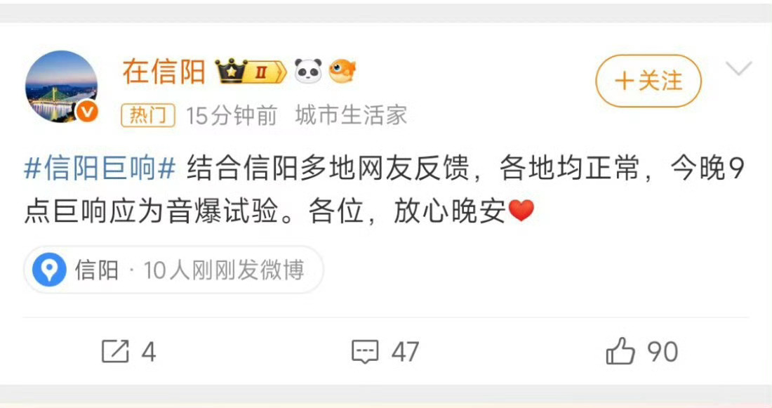 信阳巨响信阳一声巨响 好多人都听到了大家听到了吗 【有知情人说是音爆实验】