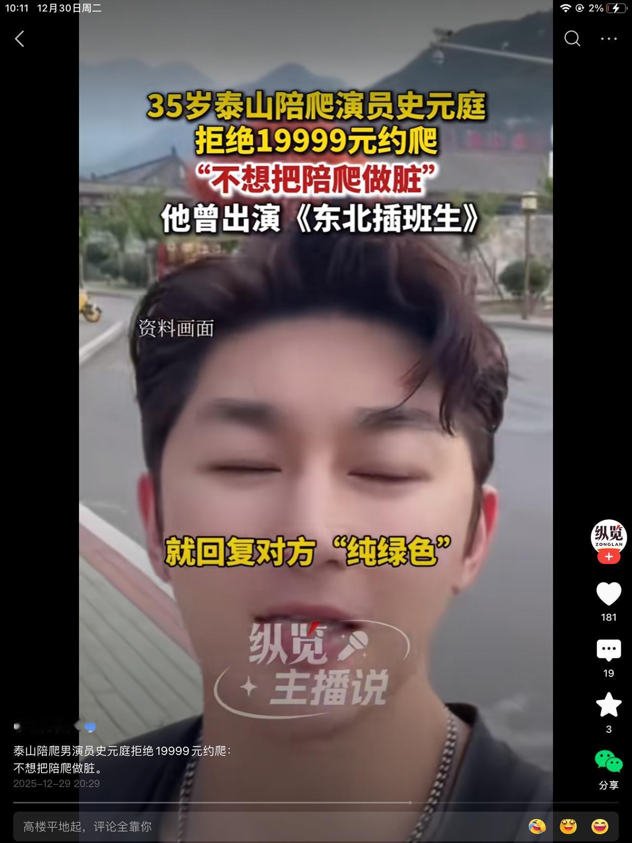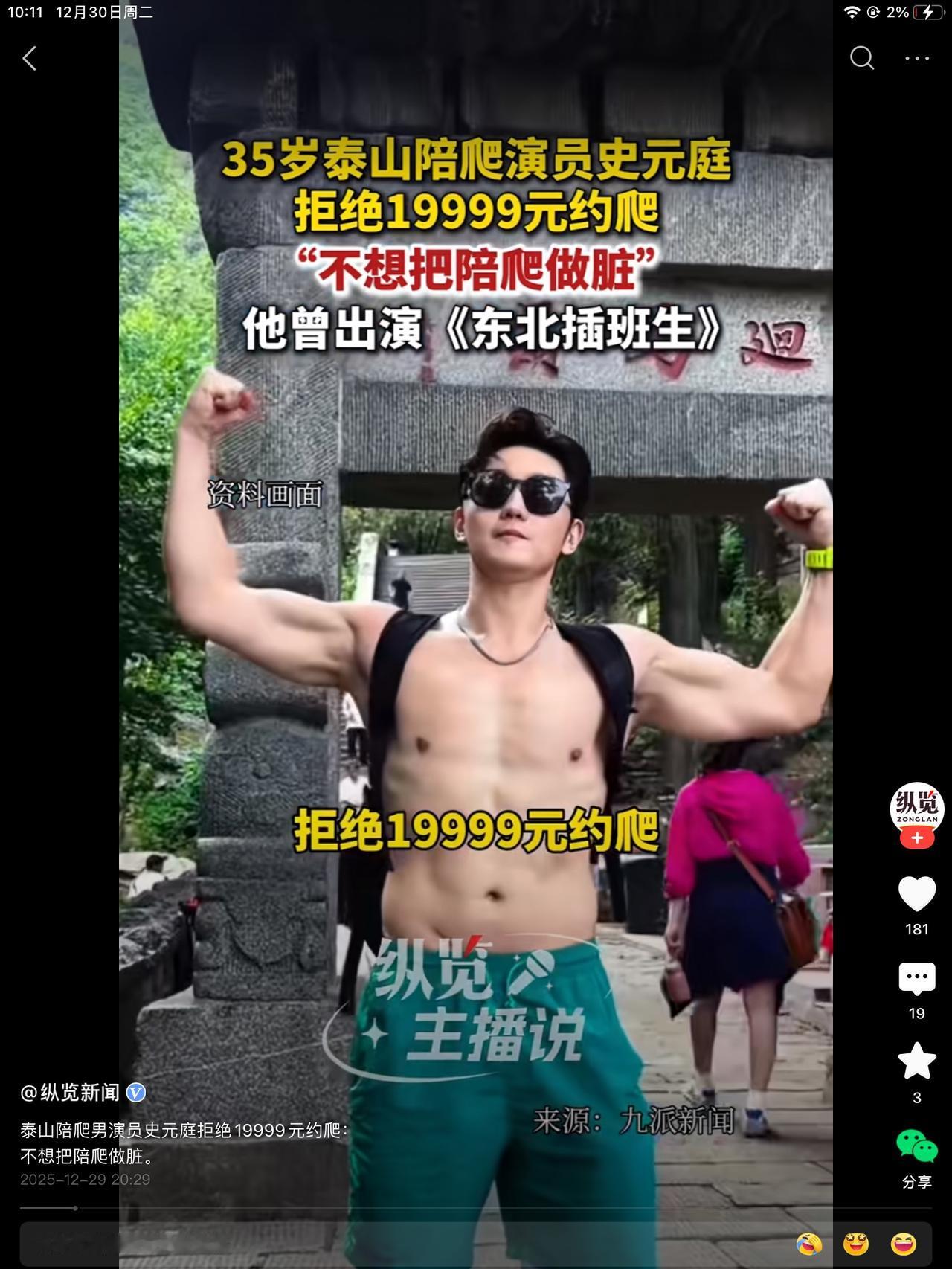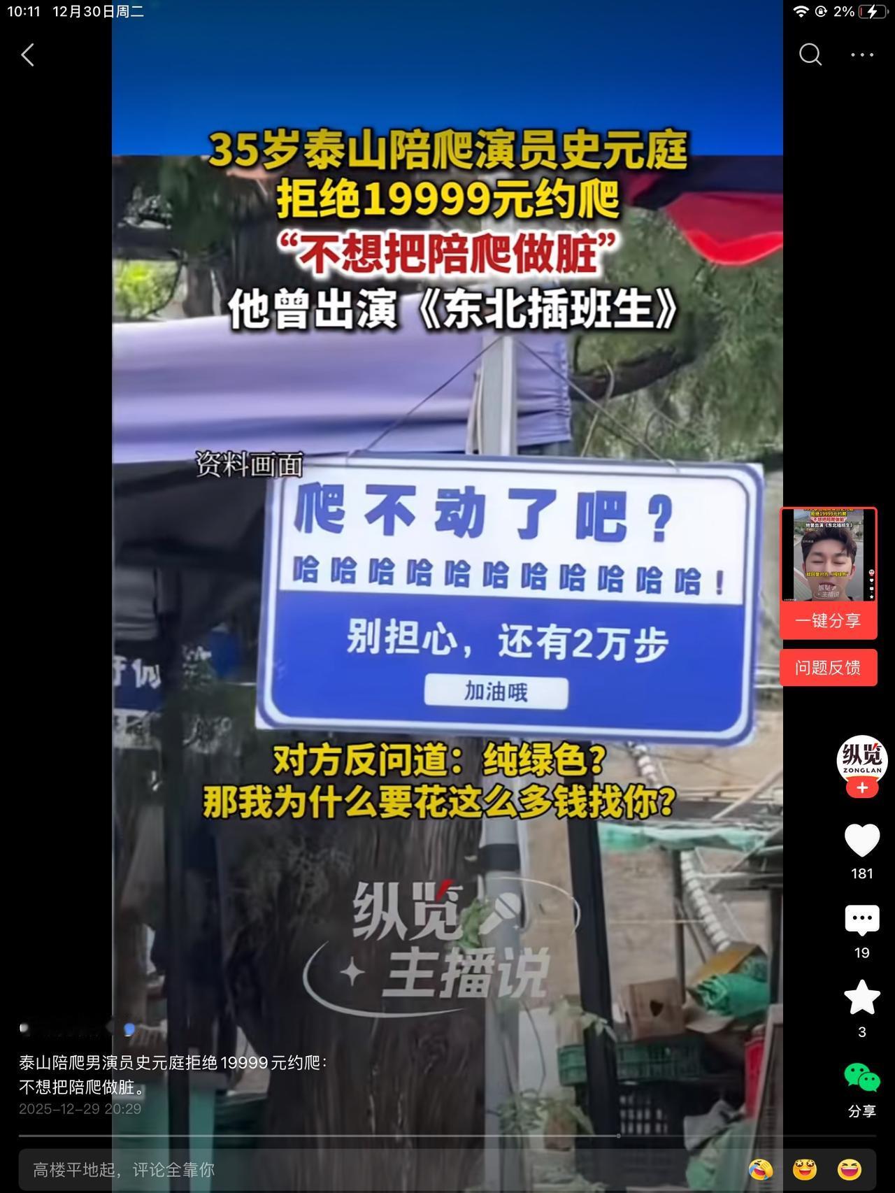 19999陪爬泰山,不想纯绿色的。我天,你不想绿色你去夜店找啊!你找人陪爬,还想人服务于你。这是想把人累蒙逼吧! 35岁,也不太年轻人的人。人家一次799就是陪伴着爬山。现在有些人,手里有俩钱不知道怎么花才好了。 ∵不接就对了,她有可能买断你后面的绿色人生路。一辈子悔在了这19999的开端上。人生,咋说呢,不能走歪路。
