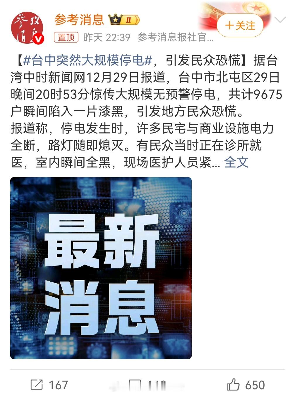 台中突然大规模停电不是演习项目,有点失望