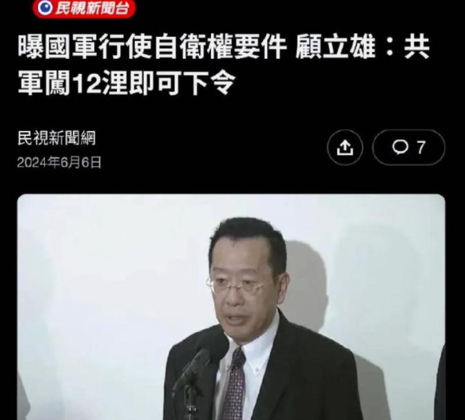去年6月,台湾省伪政府叫嚣只要大陆军队突破12海里,便可定义为第一击,岛省军队将
