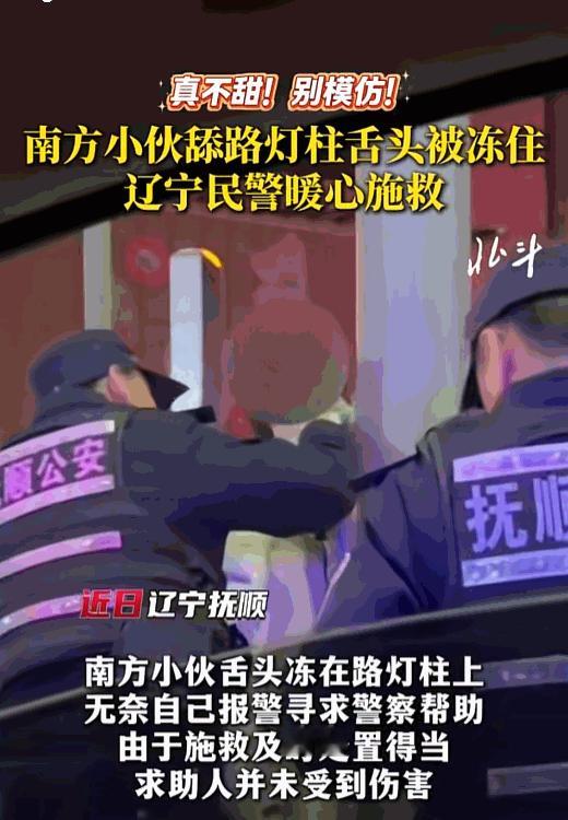 “胆子太大了!”一对南方情侣来辽宁游玩,女生随口一句:“听说路边的电线杆舔一下,舌头就拔不下来。”男生不信邪,非要当场演示给她看,张嘴就舔了旁边的电线杆,结果舌头真被牢牢粘到上面,怎么扯都拔不下来了! 冬天一到,辽宁整个地区都冷得厉害,最低气温动不动就跌破零下十摄氏度,街上的金属电线杆、护栏这些东西都结着厚厚的霜,摸上去冰得刺骨。 一对从南方来辽宁旅游的情侣,却因为一个地域相关的说法,闹出了又惊险又好笑的事儿。 路上走的时候,女生随口提起北方流传的“大冬天舔电线杆,舌头会粘在上面拿不下来”的说法,跟她一起的男生根本不信,觉得这说法太夸张了,怎么可能就因为温度低,舌头就跟电线杆粘在一起呢? 被好奇心和不服气的劲儿推着,男生不管周围天寒地冻,非要当场试试真假。 他走到路边一根金属电线杆旁边,啥防护都没做,弯下腰就把舌头伸出去舔在了结霜的电线杆上,没想到刚一碰到,舌头就瞬间被牢牢粘住了。 男生试着轻轻扯了扯,疼得不行,后来又使劲拽了好几次,不仅没分开,反而粘得更紧了。 这事儿来得太突然,女生急得手忙脚乱,旁边路过的人看见了,也想不出啥好办法帮忙。 最后没办法,两人只能打报警电话求助,警察赶到现场后,用了科学的办法,才把男生的舌头从电线杆上安全弄下来。 幸好处理得及时,男生只是舌头表面有点轻微红肿,没造成严重的组织损伤,当时有路人把这一幕拍了下来发到网上,很快就传开了,还引发了一大堆讨论。 这事儿看着滑稽,背后却藏着低温环境下大家科学常识的缺失,更暴露了南北气候不一样,导致大家对彼此生活环境的认知有差距。 这事儿在网上发酵后,网友们的讨论五花八门。 有不少北方网友以过来人的身份调侃说,这可是刻在北方人童年里的“安全提醒”,小时候家长都会反复叮嘱,千万别一时好奇去舔冬天的金属物件,很多人小时候都有过想试试的冲动,只是最后没敢真的做。 还有些网友开玩笑说,“东北的铁柱子真不甜,没必要亲自去尝”,用轻松的语气化解了这事儿的尴尬,同时也提醒大家别犯傻。 现在冰雪旅游越来越火,南北之间的交流也越来越密切,这种因为气候差异引发的意外,以后可能会越来越常见。 这就需要各地的文旅部门和相关机构,在推广冰雪旅游资源的时候,顺便做好针对性的气候常识科普,把低温环境下的安全注意事项、常见风险这些内容,放进出行指引里,慢慢缩小南北之间的认知差距。 对于游客来说,出门旅游别抱着猎奇的心态,要对不同的环境保持敬畏,主动去了解目的地的气候特点和安全禁忌,这样才能避免危险。 毕竟,旅游的意义是欣赏不一样的风景,感受不一样的文化,而不是拿自己的安全去验证那些没根据的传言。 这次冬天里的小意外,其实也可以当成一次全民科普的机会,让南北的人都能在笑过之后,多了解一点不同气候环境下的常识,增进彼此的理解。 信息来源:北斗融媒《南方小伙舔路灯柱舌头被冻住辽宁民警暖心施救》