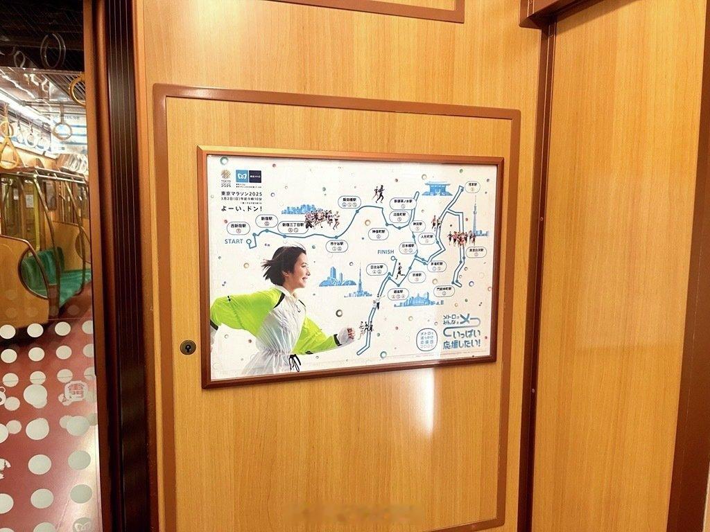 东京地铁银座线出现了一列2026东京马拉松限时助威列车,而东京地铁内也开始出现2026东马的海报了。东京地铁在东京马拉松的赛事赞助商级别中能达到 Premier 的极高级别,出现在很多选手的号码布上,的确是非常深入的合作了。东京马拉松 2026东京马拉松 东京地铁